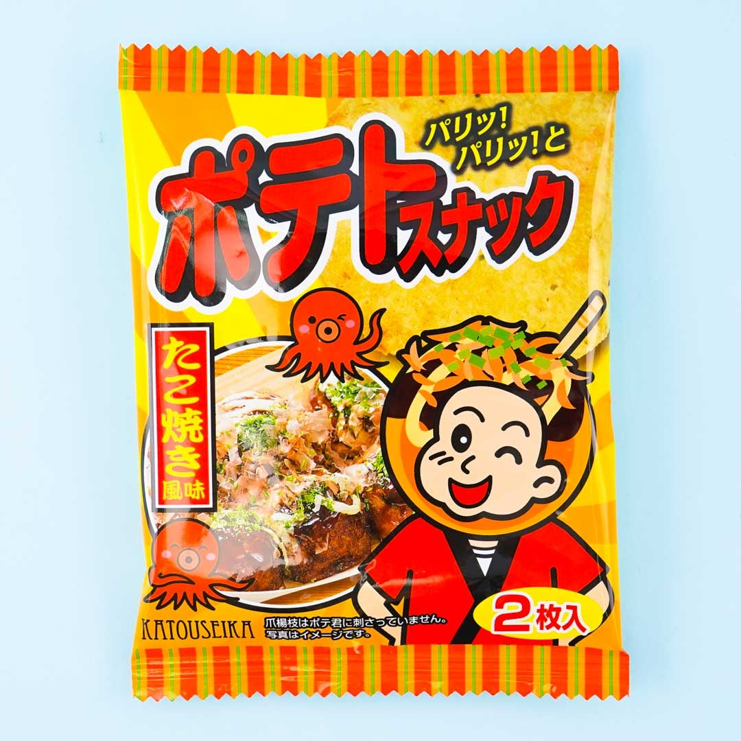 A pack of takoyaki-flavored potato snacks