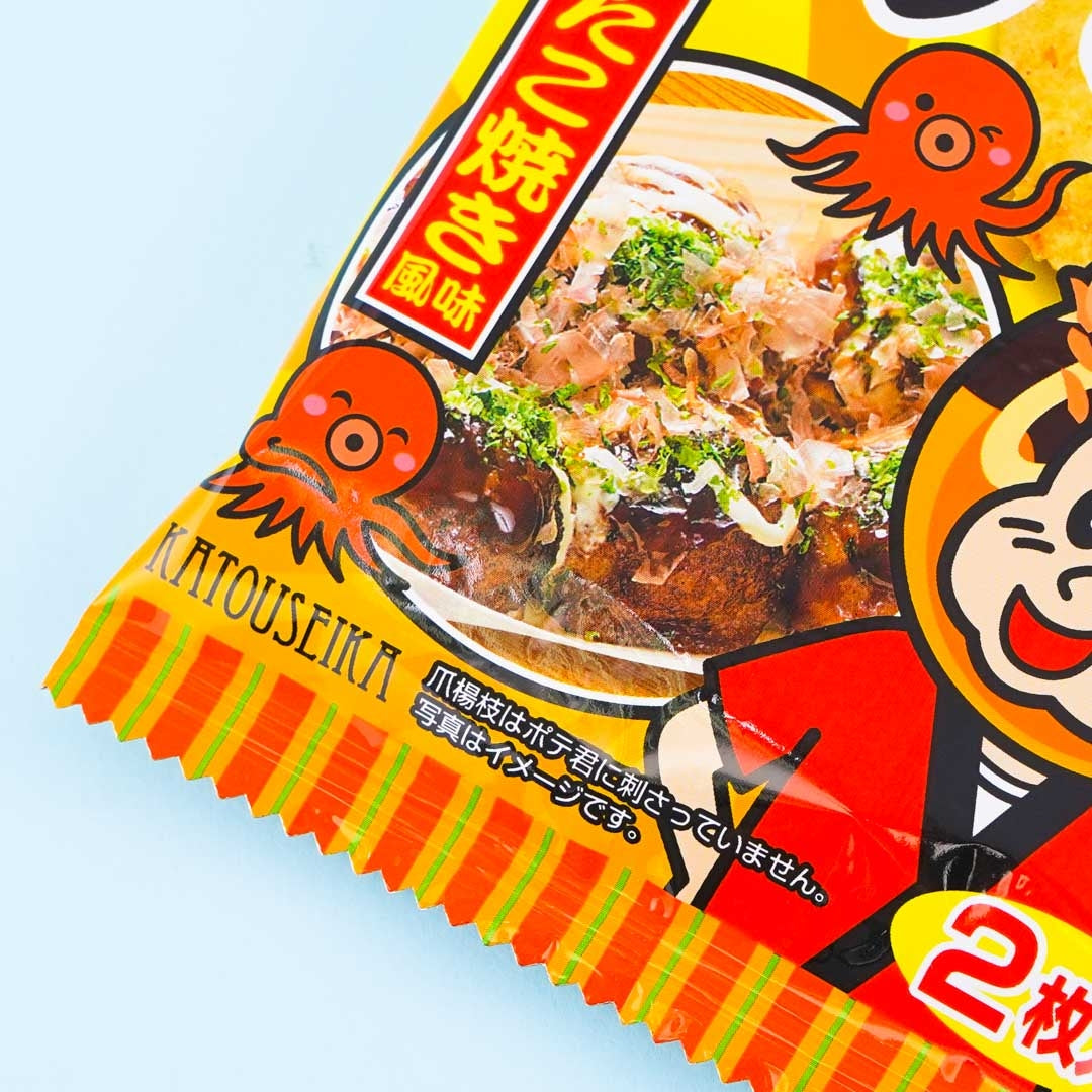 This pack of potato snacks is made to taste like takoyaki, a delicious ball-shaped Japanese snack made of wheat batter and pieces of chopped octopus. Enjoy snacking on these takoyaki-flavored treats!