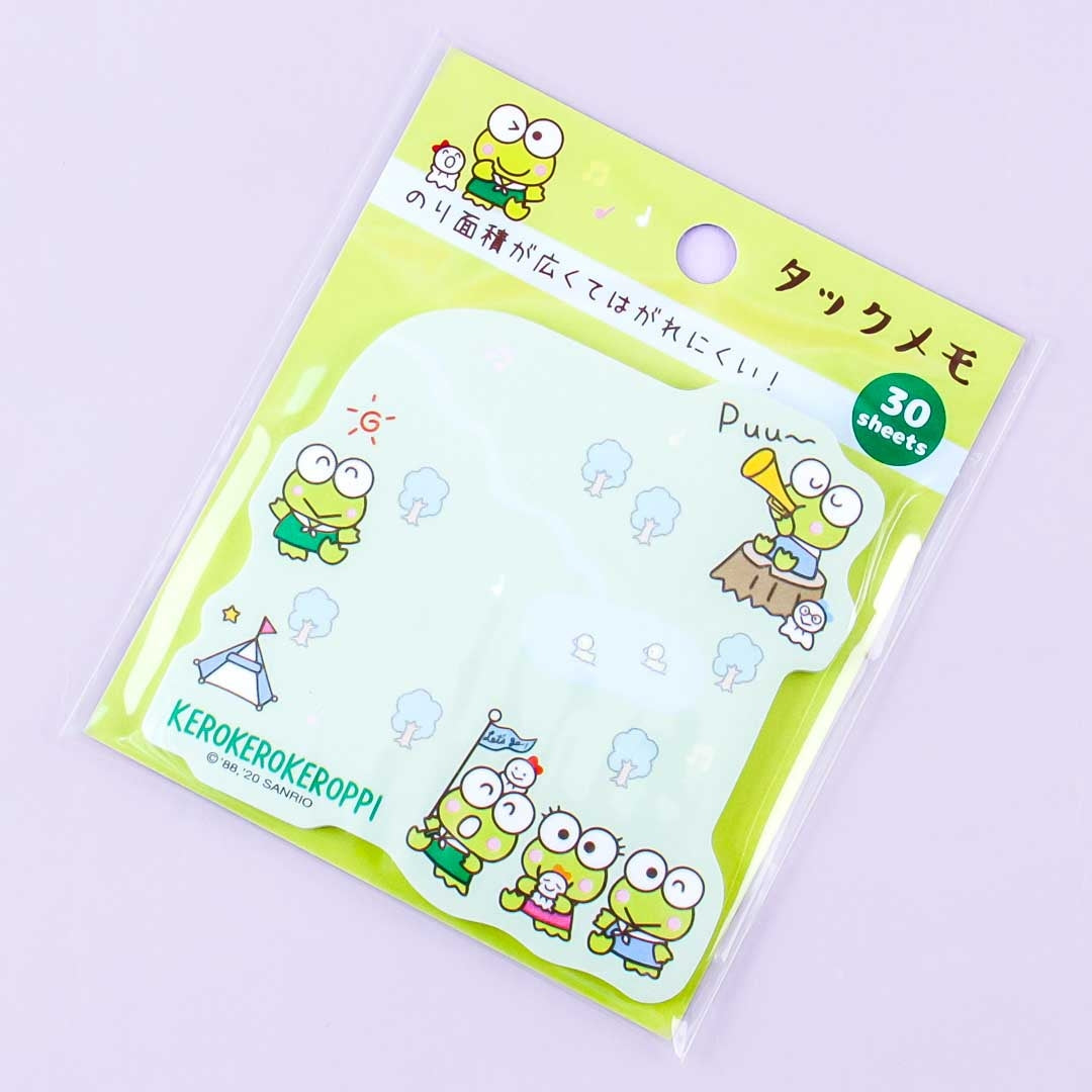 A super cute die-cut pad of sticky notes illustrated with Keroppi and his friends camping