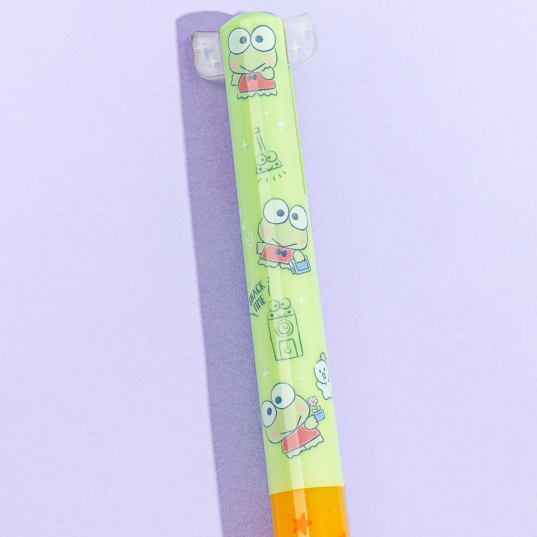 List down important reminders using this super cute pen with protruding ears! It’s decorated with kawaii illustrations of Keroppi having a fun day gardening, reading, and snacking! You can even switch between two ink colors when using the pen.