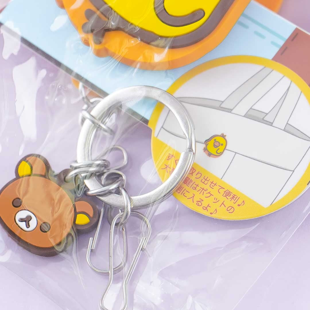 This super cute Kiiroitori keychain can be attached to your favorite bag or your clothes' pocket using the clip at its back side! It also comes with 3 empty metal hooks, a key ring, and a Rilakkuma charm!
