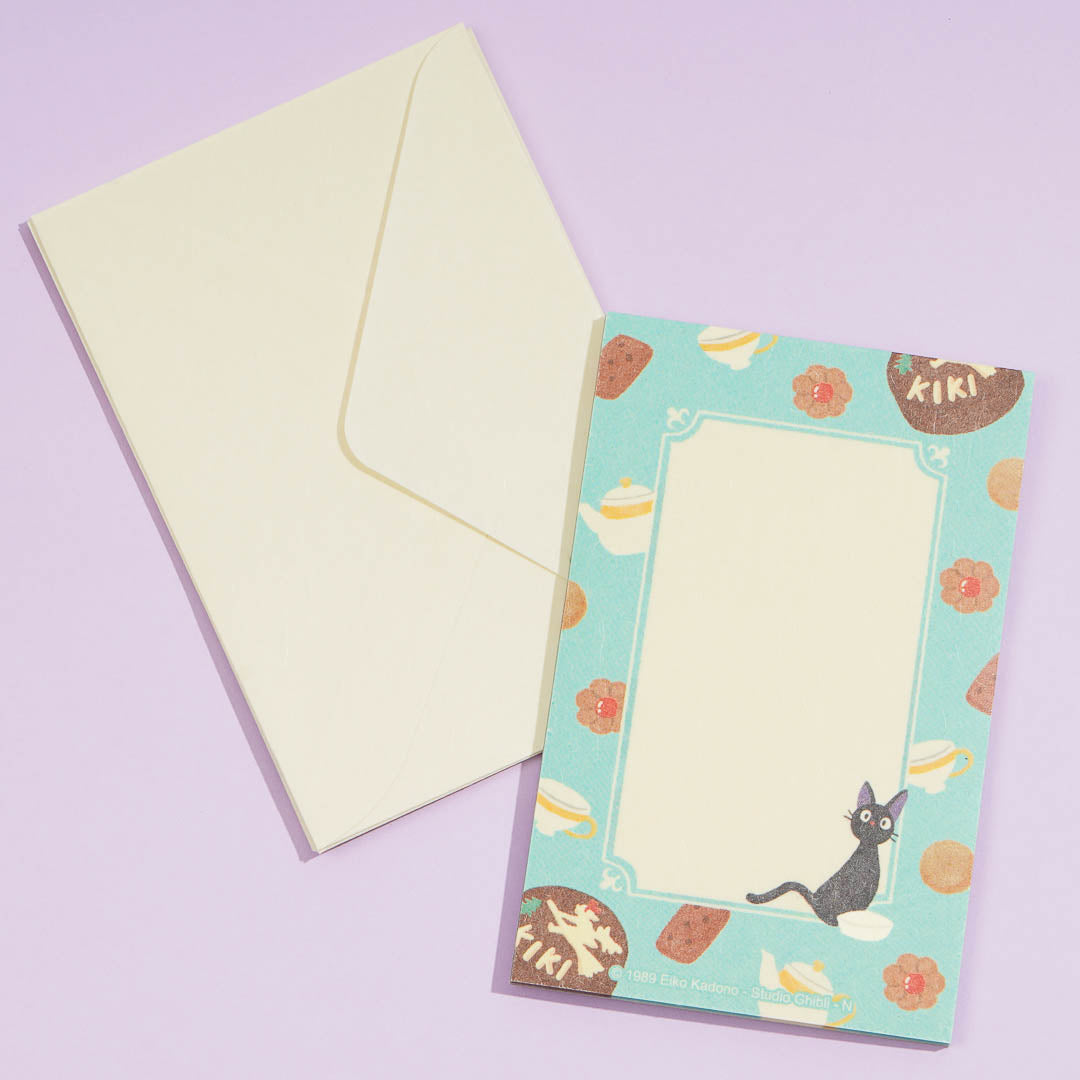Send a heartfelt letter to your friends using this super kawaii set! Each sheet features a cute cookie and tea design with Jiji, the cat from Kiki's Delivery Service. This letter set comes from Studio Ghibli's "Break Time" series!