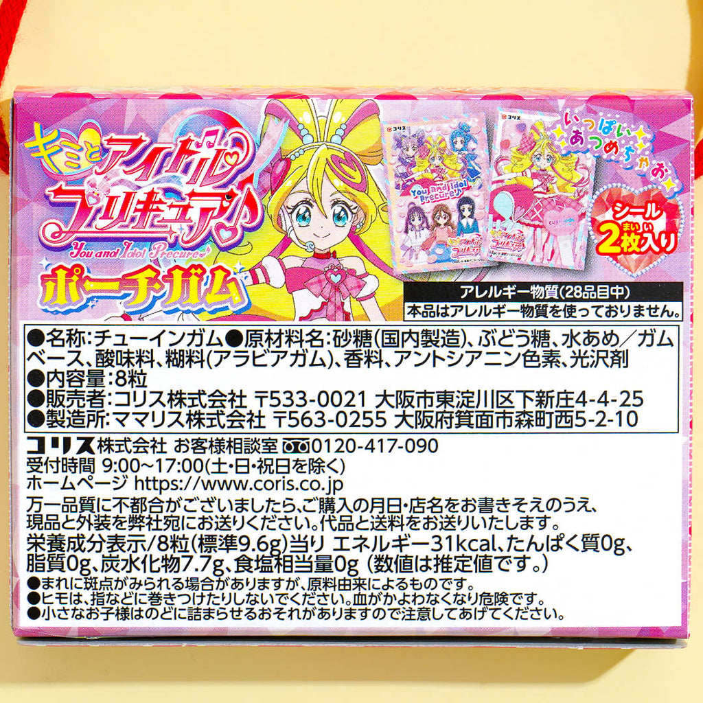 This super cute pouch of grape-flavored gum showcases prints of the new Pretty Cure anime, Kimi to Idol Precure! It comes with 2 Pretty Cure stickers. Chew on the gum whenever you need a quick sugar rush.
