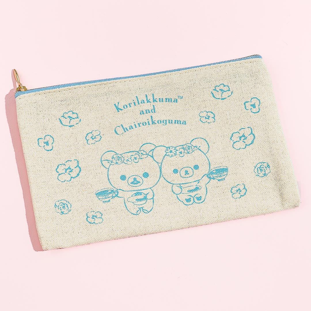 Korilakkuma & Chairoikoguma Flower Tea Time Flat Pouch - Blue