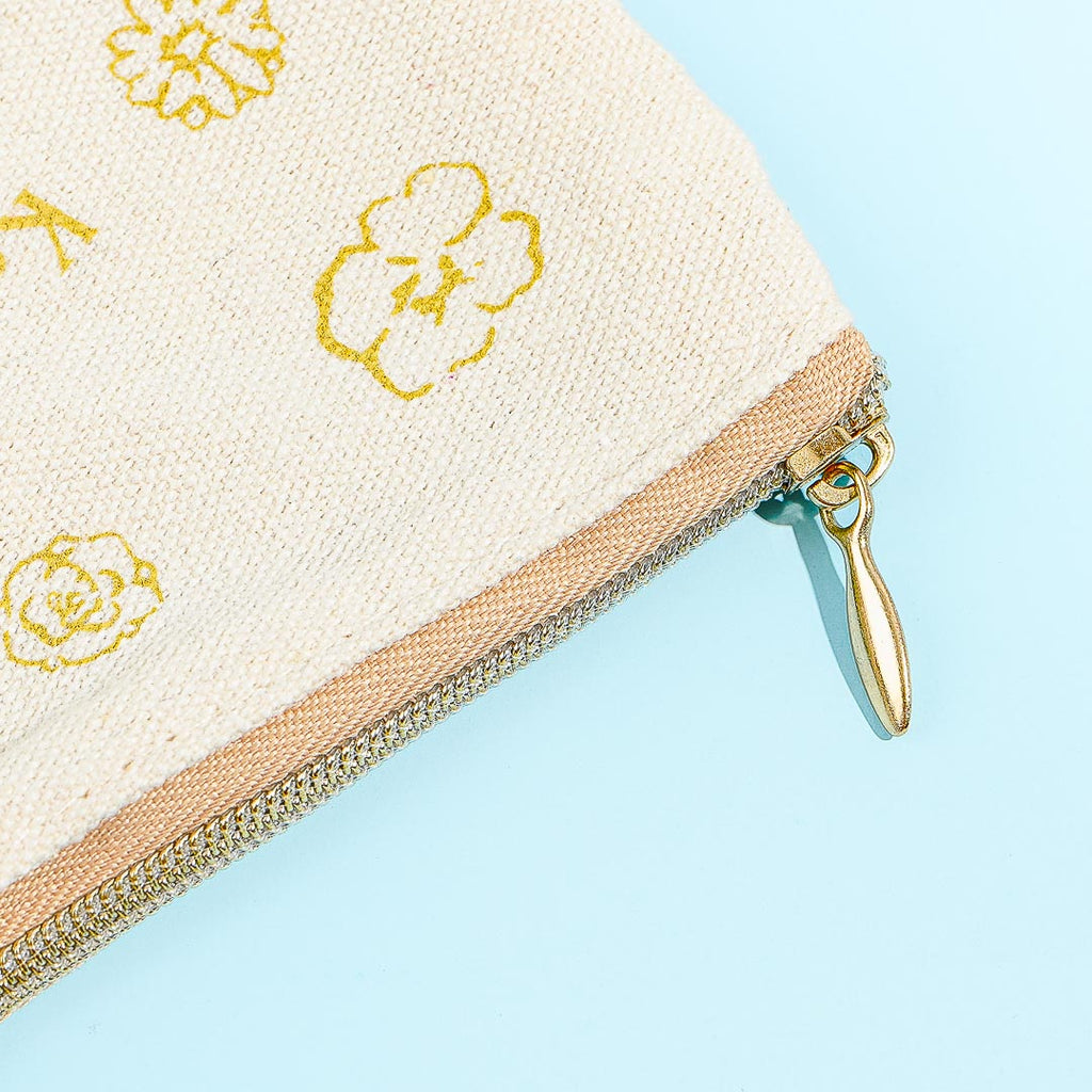 Store your barrettes, hairpins, and hair ties inside this kawaii flat pouch! It has cute yellow-colored illustrations of Korilakkuma having a lovely garden teatime with Chairoikoguma.