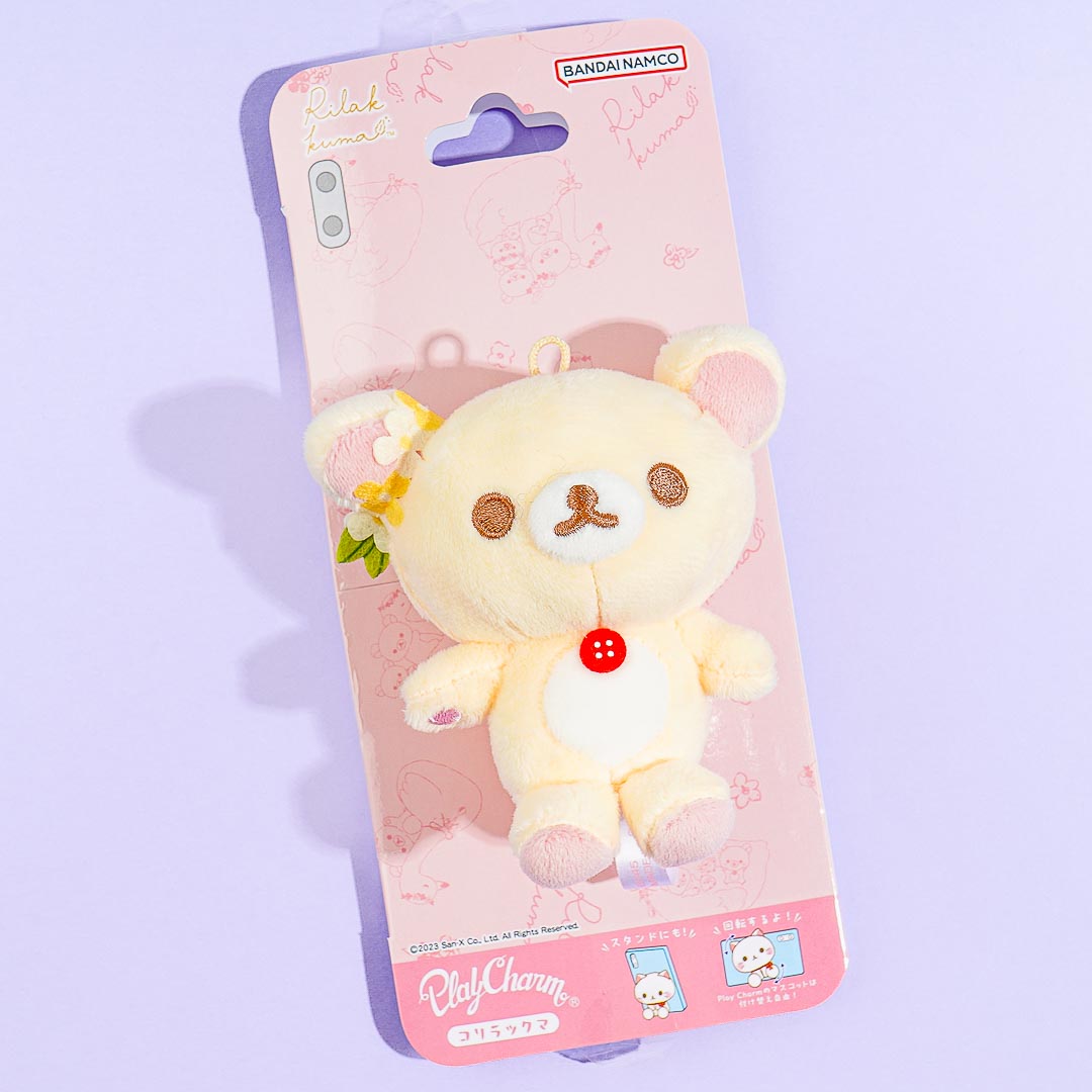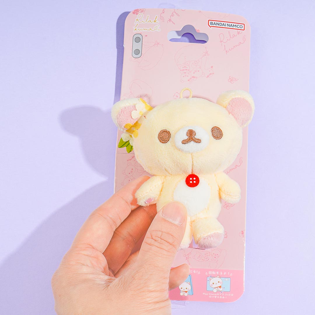 Korilakkuma looks super cute with flowers on her ear! Attach this mini plush charm to your smartphone case using the hook for a dose of kawaii. It doesn't matter what phone model you have! You can also use it as a phone stand.