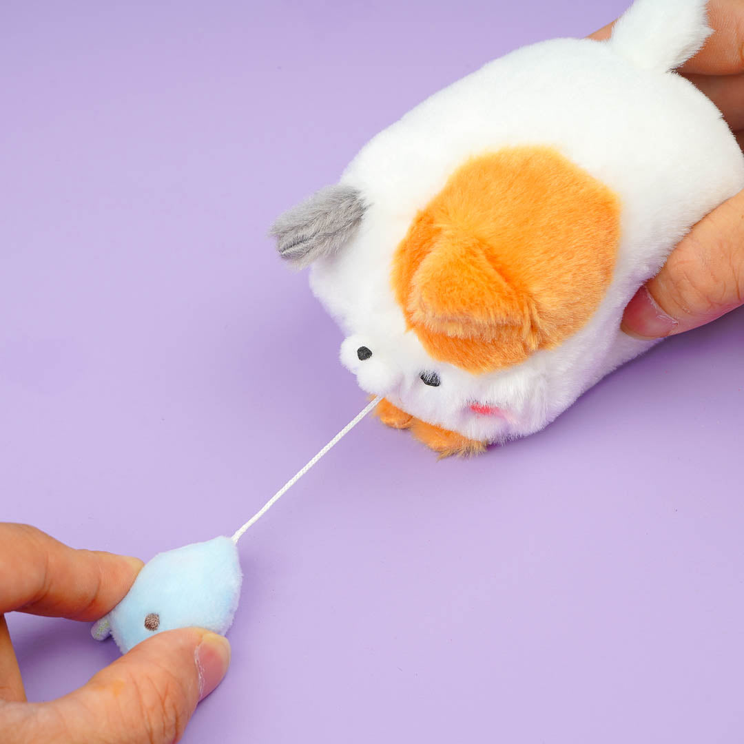 This kawaii mini plushie movies when you pull on string! It features a Korokoro animal with a charm in its mouth that's attached to the string. This plushei does not need any batteries so you can play with it anywhere you go.