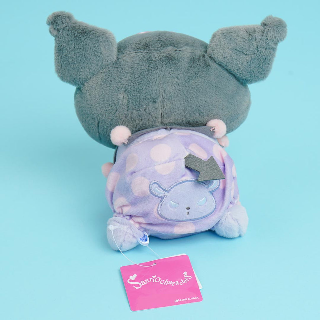 Kuromi has transformed into a really cute baby plushie! This medium-sized stuffed toy wears a fluffy diaper and is in a crawling pose. Add this to your kawaii plushie collection.