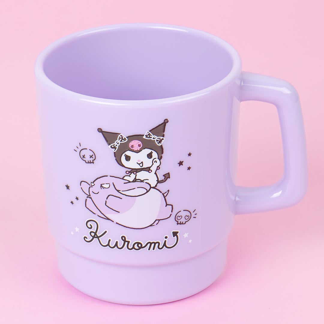 Use this kawaii purple mug when you want to drink hot or iced beverages! It’s decorated with prints of Kuromi and her sidekick, Baku having fun together! This useful mug can be stacked on top of cups with similar shape.