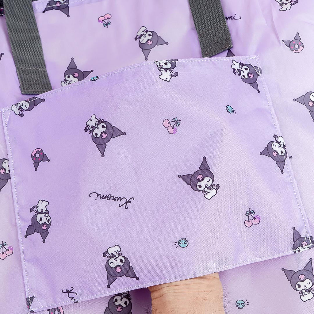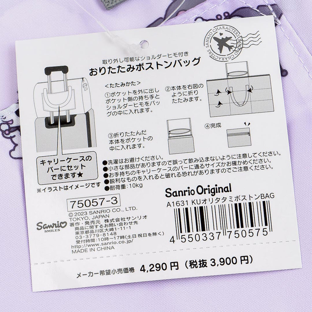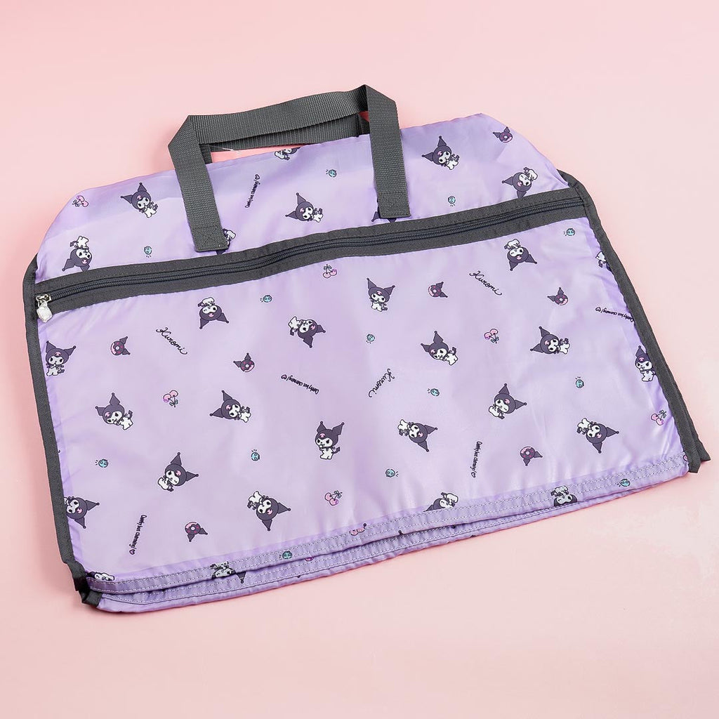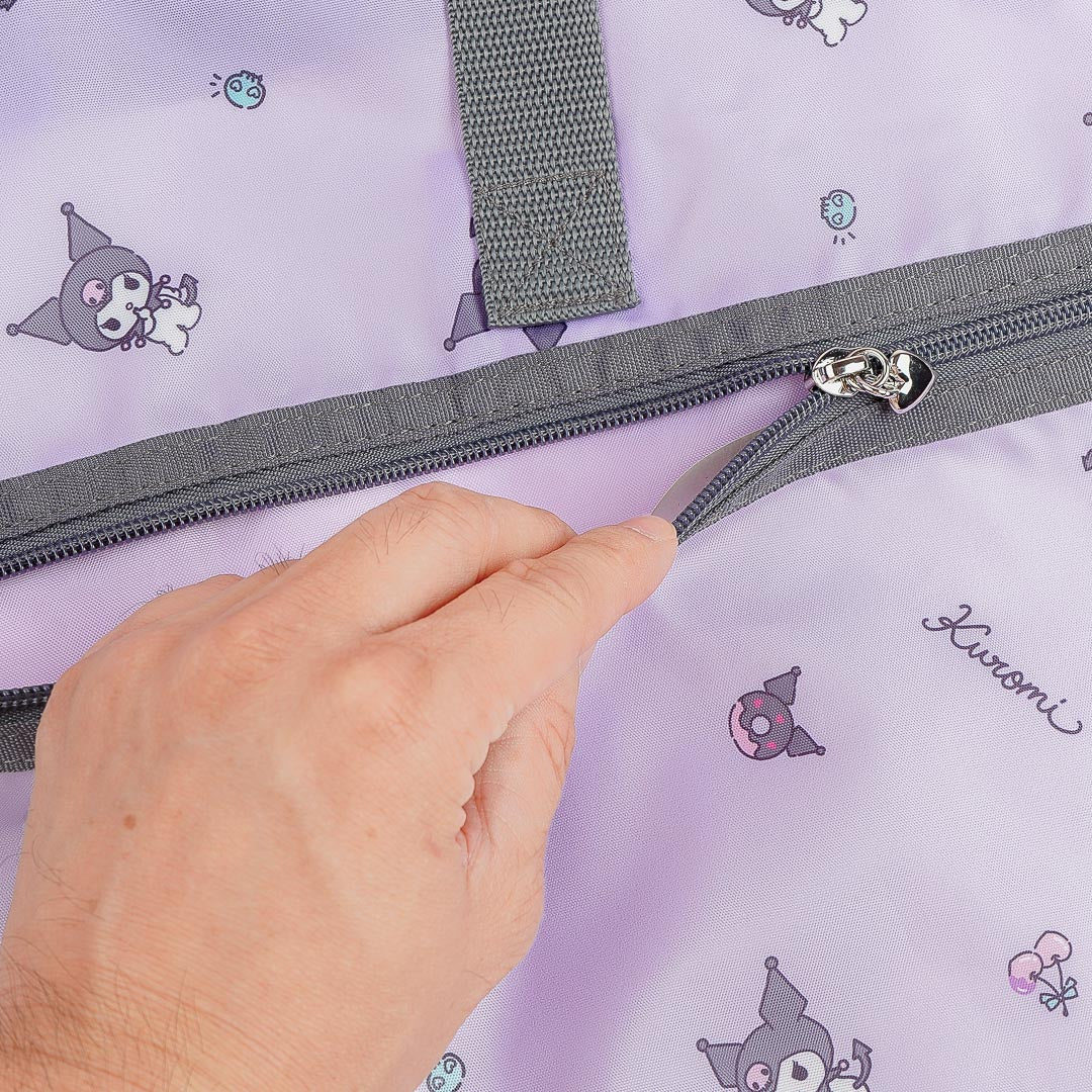 Carry around your stuff with this kawaii Boston bag! It features cute prints of Kuromi with cherries and skulls. The bag can be folded into the inner pocket so you can put it away when you're not using it.
