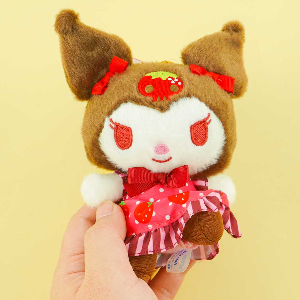 This kawaii Kuromi plushie charm is wearing a super cute dress inspired by chocolate strawberry desserts and a pair of red hairbows! Add a dose of cuteness to your plain tote by attaching this charm!
