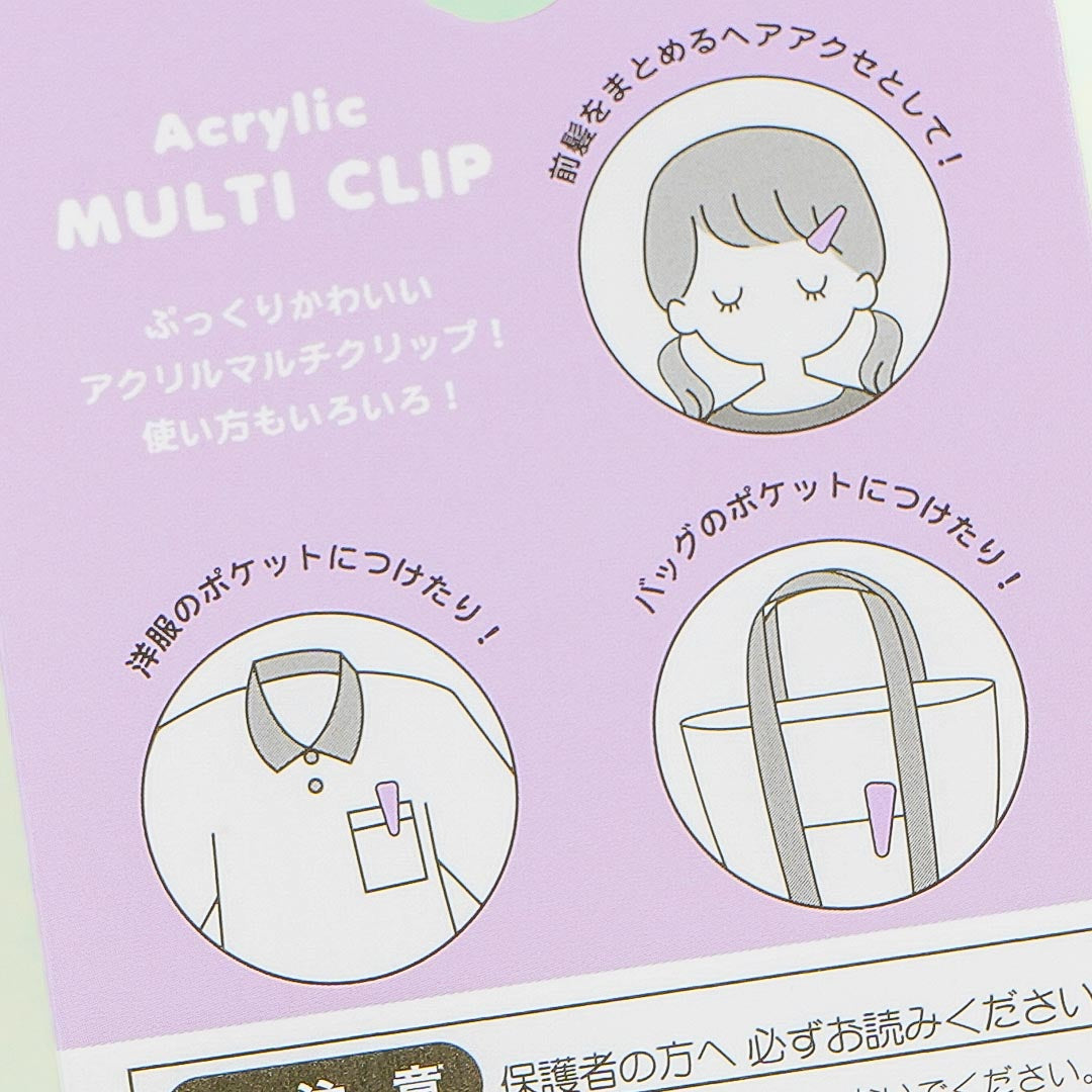 This super kawaii multi-purpose acrylic clip features a print of Kuromi making a clinging pose! You can use this clip for your hair. It can also be used as a decor for your shirt pocket or for your bag.