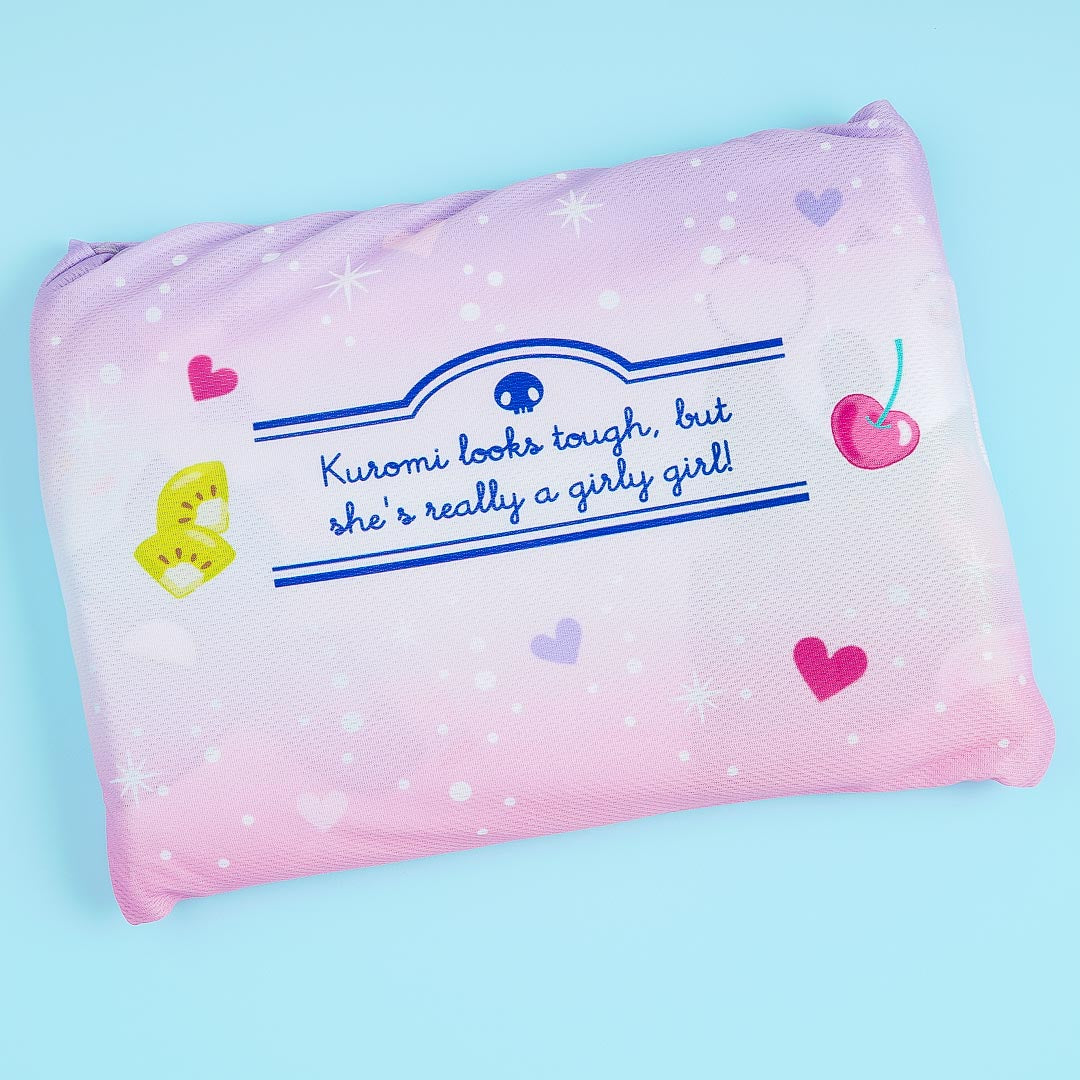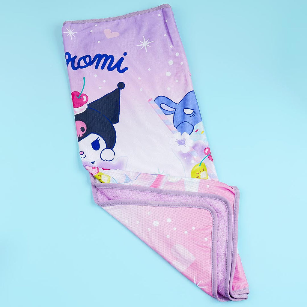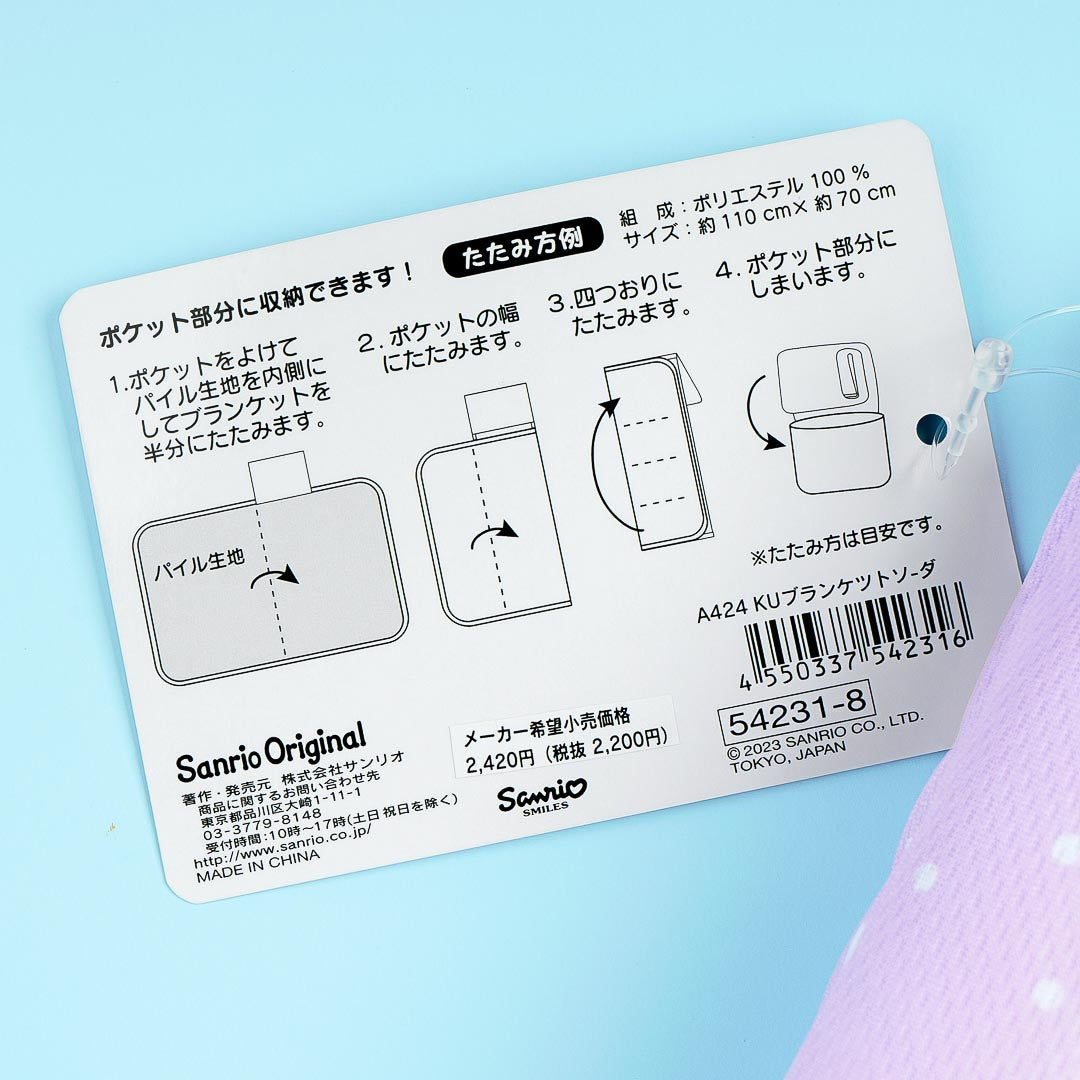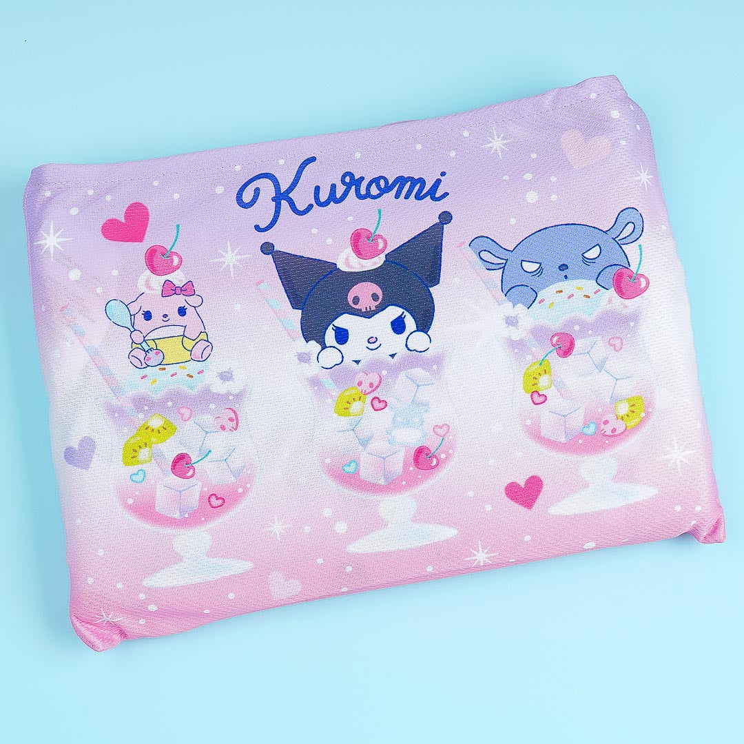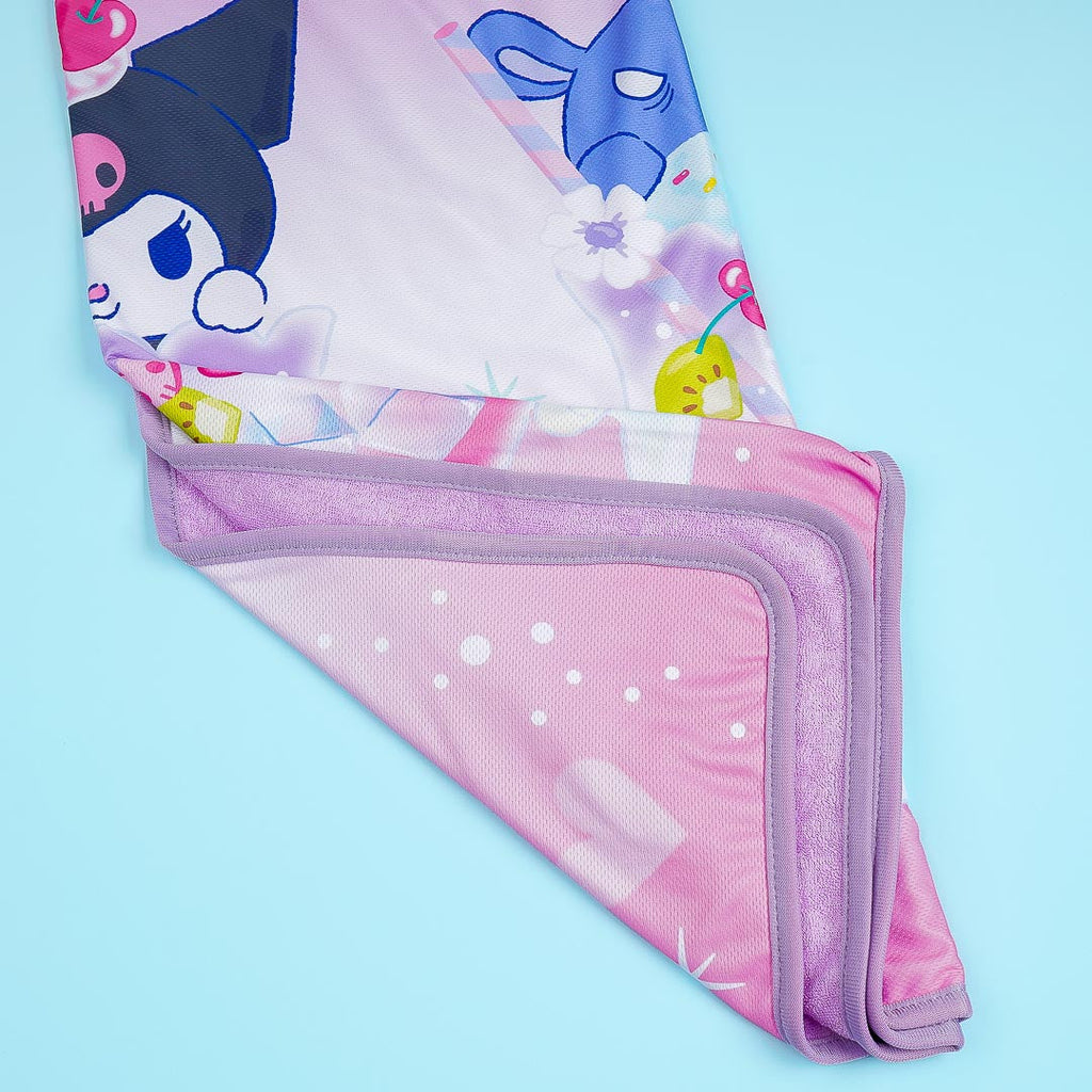 This kawaii breathable blanket is perfect for napping in cold rooms. It's illustrated with cute prints of Kuromi and Baky in glasses of cream soda. The blanket also features a pocket you can fold it into.