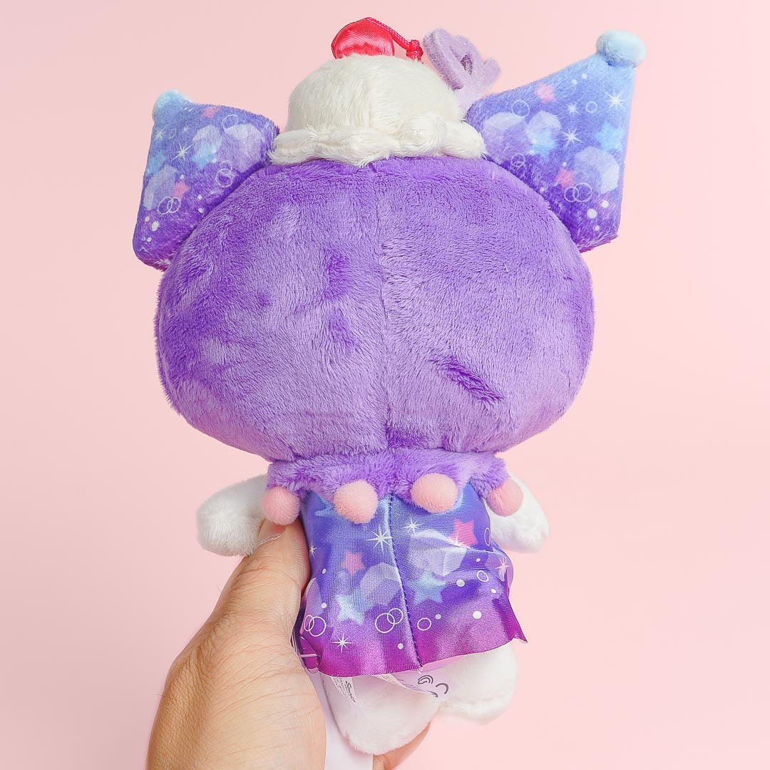 Have a super fun playtime with this kawaii Kuromi plushie with a fizzy-looking cream soda design! It's made from fluffy material and bean filling so you can place it upright on your bedside table.