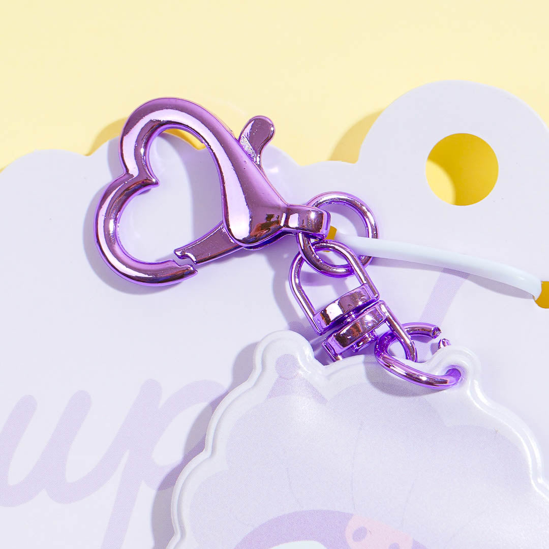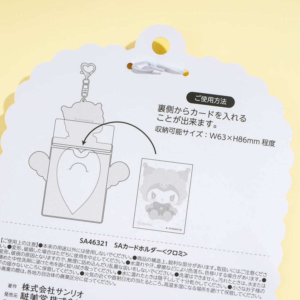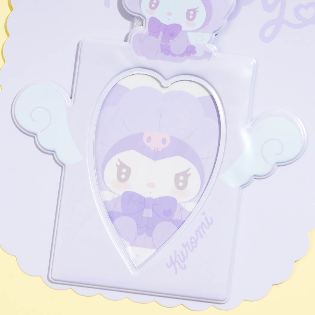 Display your favorite photo card using this super cute card holder! It showcases a cute design with Kuromi looking like a baby cupid. This card holder comes with a heart-shaped carabiner so you can attach it to your bag!