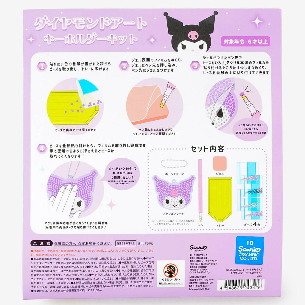 Add a sparkle to your day with this diamond art keychain kit! You can decorate Kuromi's mischievous face with sparkly rhinestones. It comes with everything you need to make your own Kuromi acrylic charm!
