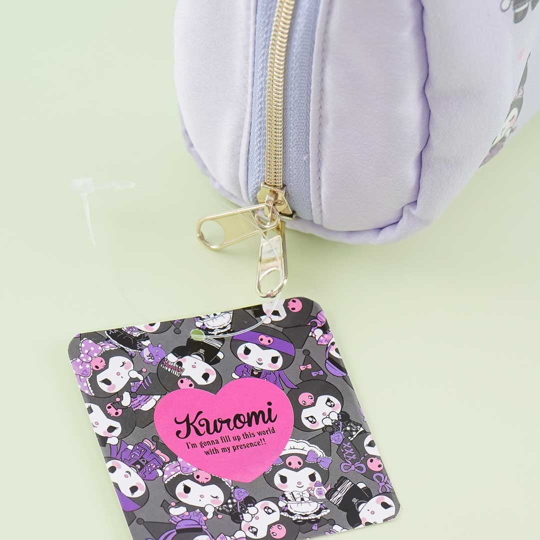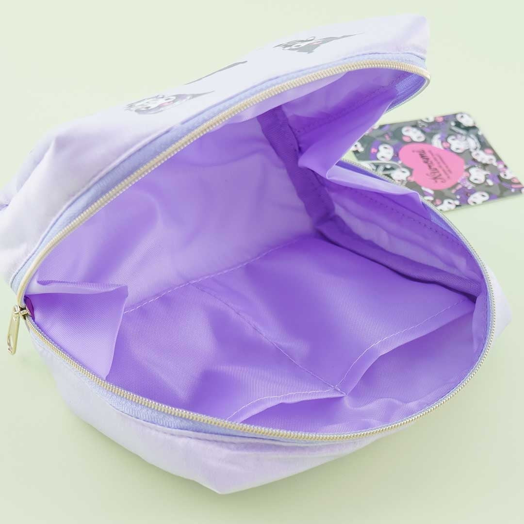 Use this super cute zippered pouch to store your cosmetics during travel. It has two inner pockets and features the charming Kuromi in wearing various kawaii outfits!