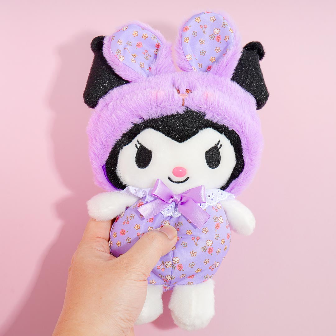 Go out and have picnics together with this kawaii medium-sized Kuromi plushie! It's wearing a retro flower bunny outfit. You can snuggle with this cutie during naptime!