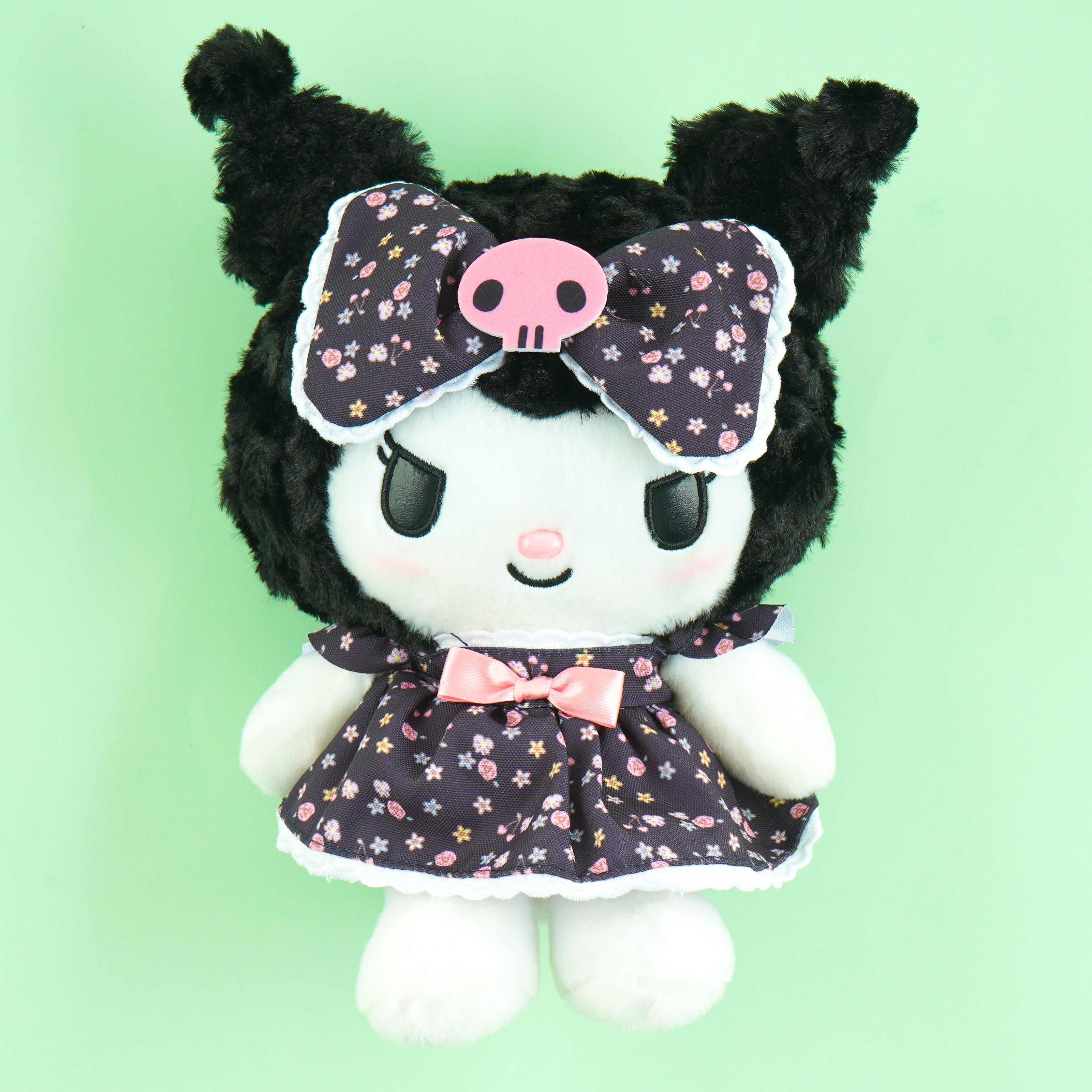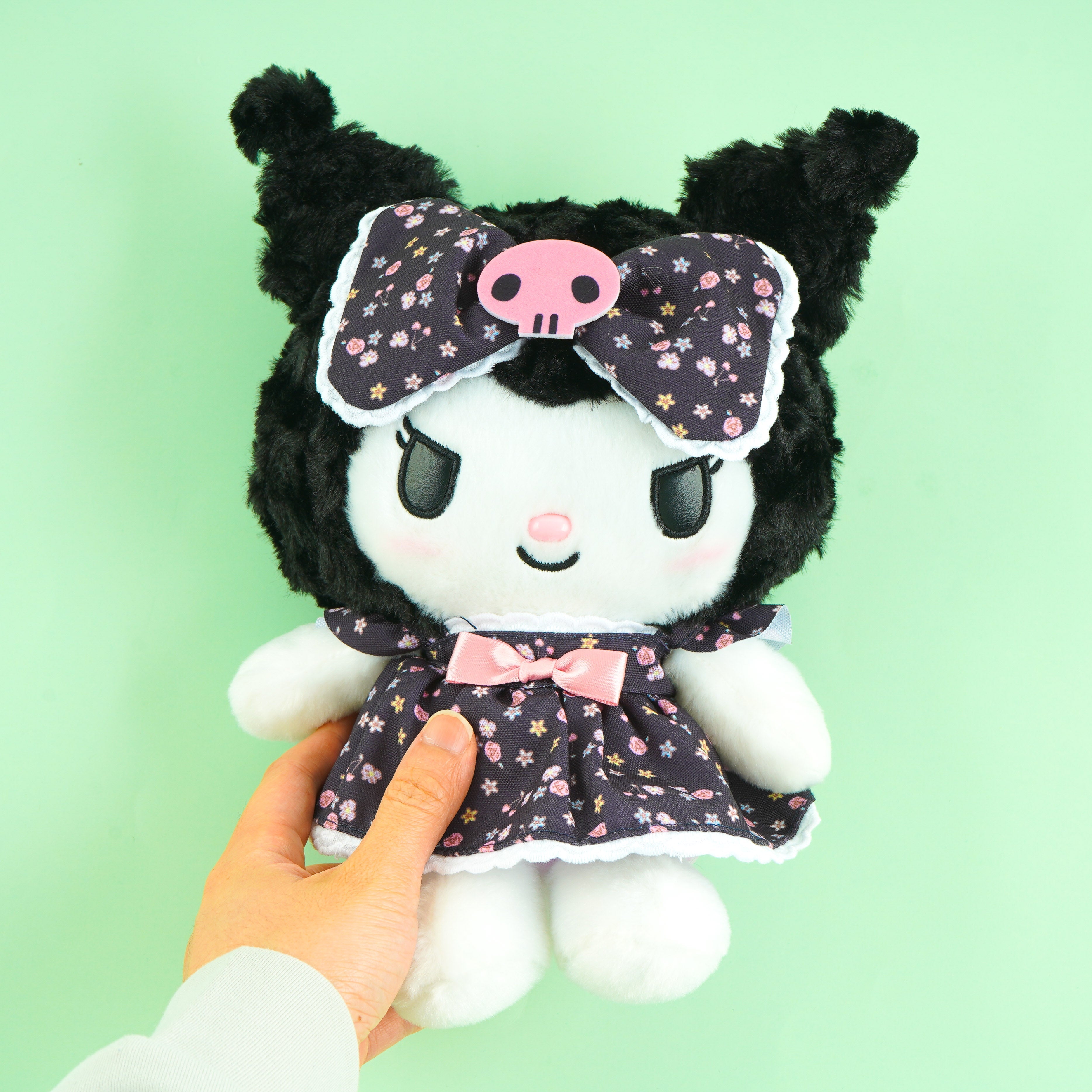 This kawaii Kuromi sitting plushie is wearing a black dress and ribbon that has matching floral prints inspired by the lovely blooms of her town, Maryland! Add a dose of cuteness to your bed by placing this cute plushie!