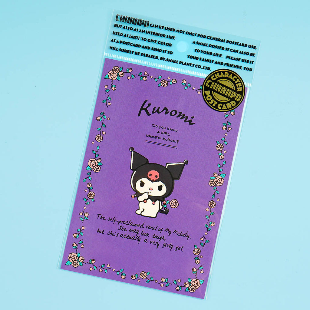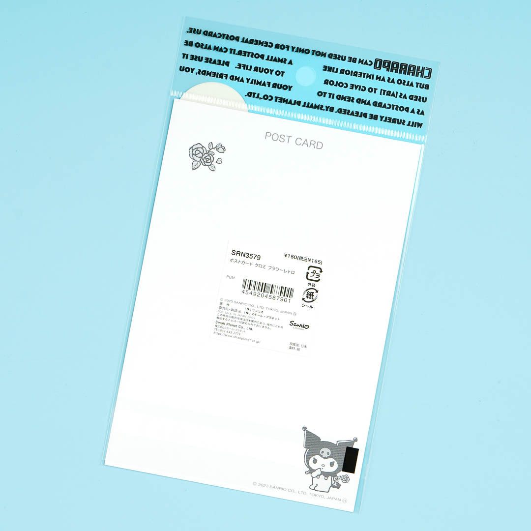 This kawaii postcard features Kuromi with a cute flower border! Send this to your loved ones or keep it as a kawaii collectible.