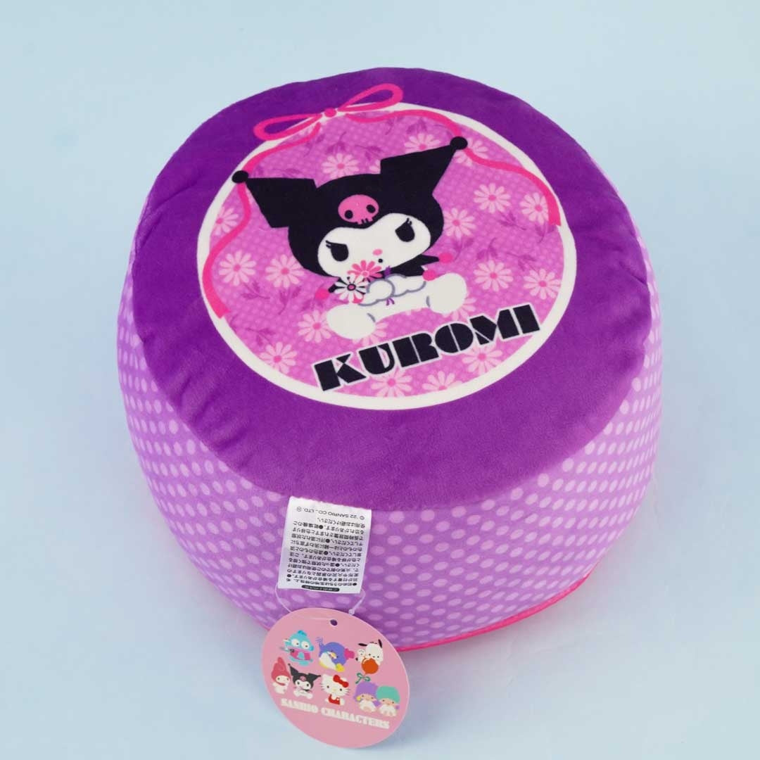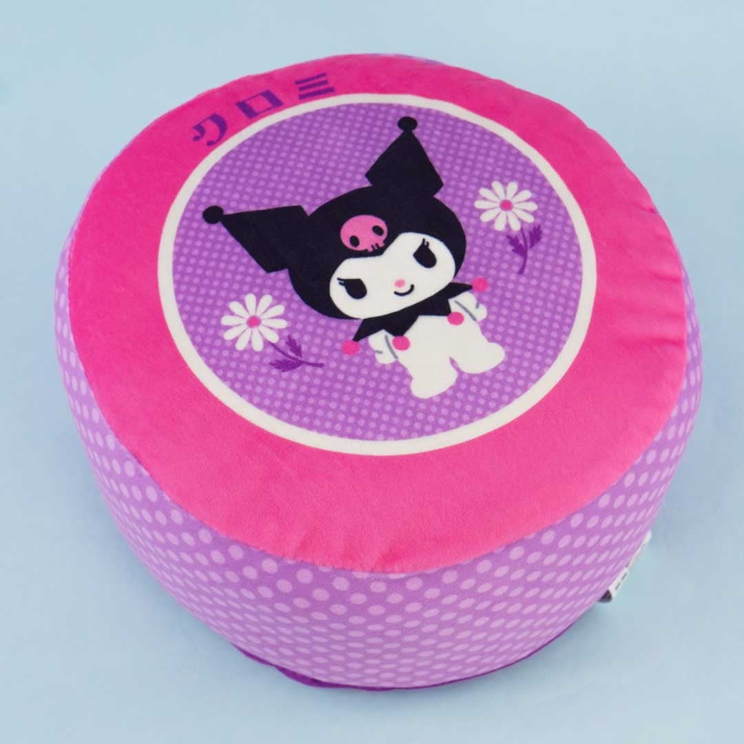Place this super cute round and puffy cushion in your room! It's decorated with a print of Kuromi and flowers. This cushion comes from the Sanrio Showa Retro Puff Cushion series.