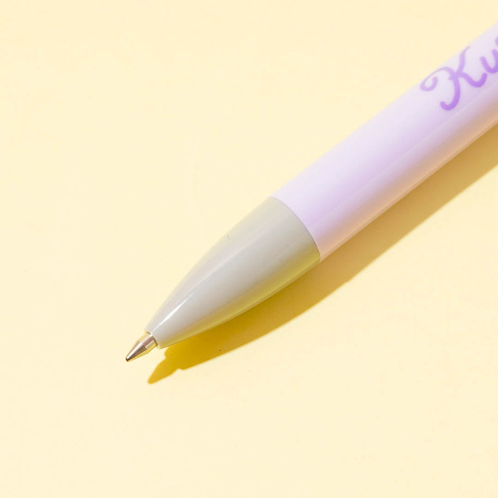 Write your stories and draw the characters using this two-colored pen that doubles as a mechanical pencil! It features a die-cut charm with a print of Kuromi looking like a fluffy plushie.