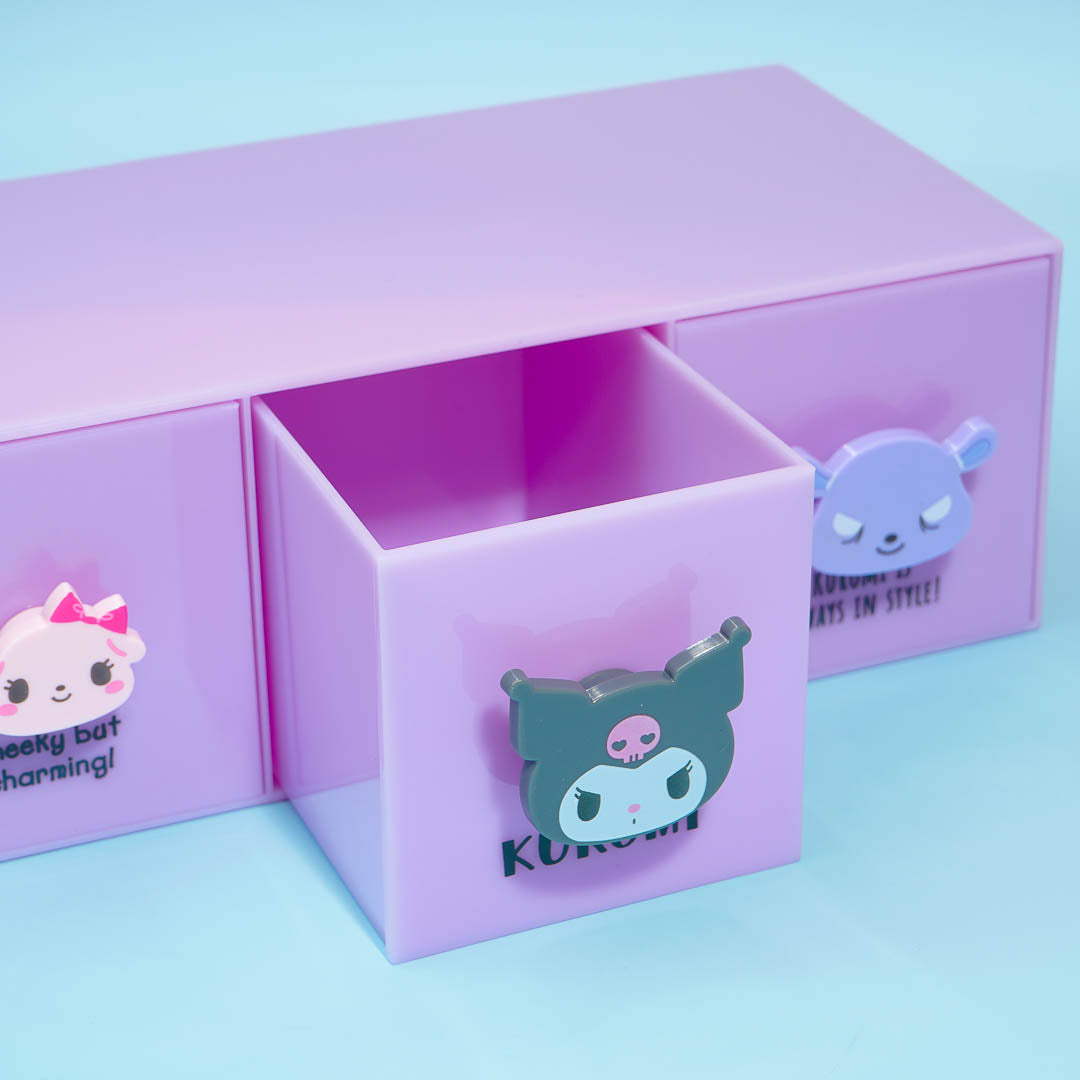 This drawer organizer is perfect for arranging the things on your desk. It has handles showcasing Kuromi and his buddies. Use it to sort your erasers, paper clips, and all your other knick-knacks!