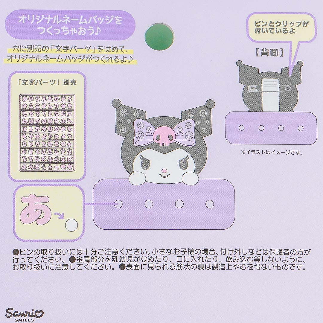 Use this super cute badge to display your or your bestie's name! It features Kuromi filled with gems and glitter. This name tag comes with a clip and a pin so you can choose how to attach it to your bag! You can also personalize this tag with Hiragana decors using the slots.