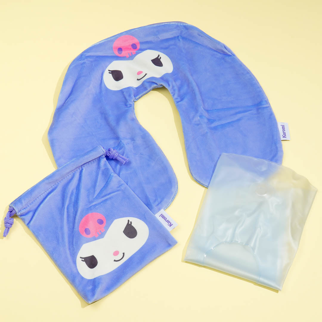 This cute Kuromi air neck pillow is the best item to bring along while traveling. You can inflate it with air when you need it and then deflate it when you're done. It has a cover that you can remove and wash!