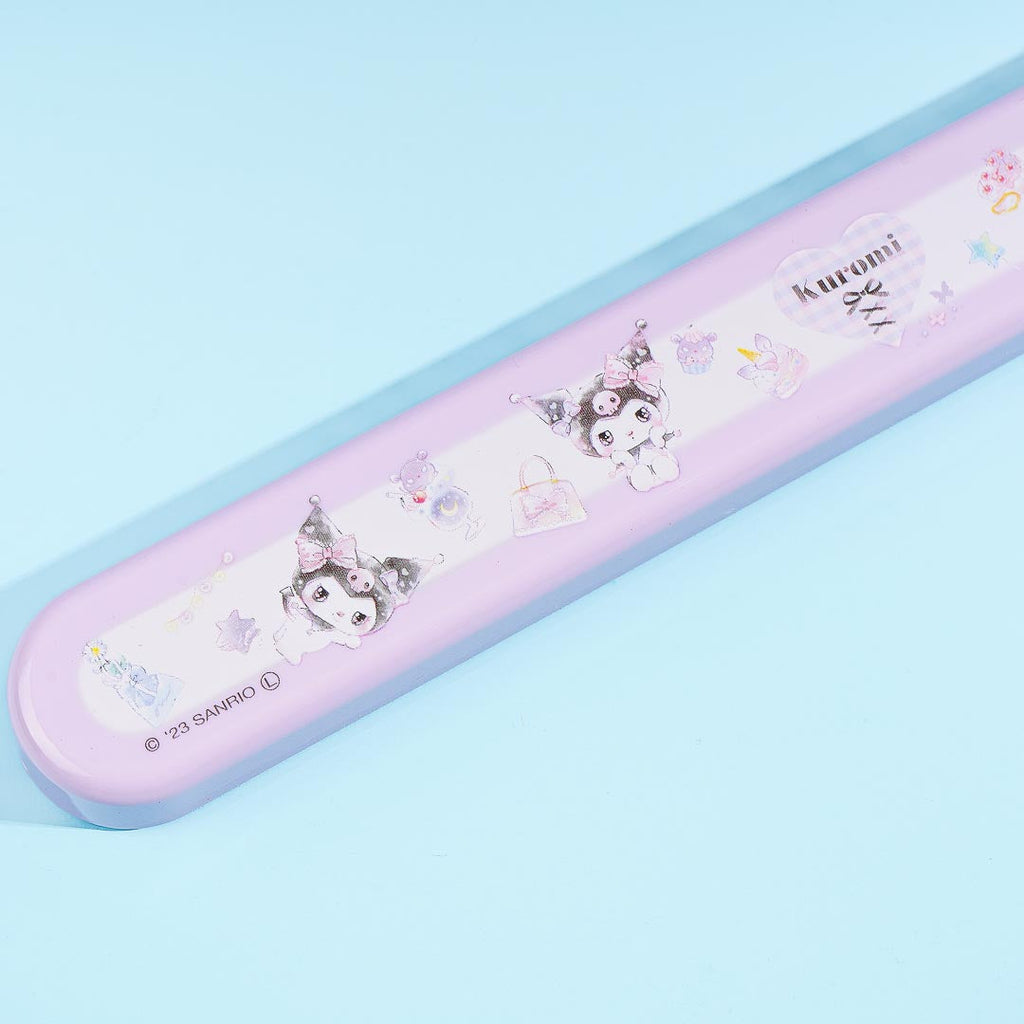 Bring this super kawaii chopstick set together with your bento box! It showcases prints of Kuromi having fun dressing up and being girly. Keep these chopsticks inside their sliding-type carrying case. You can clean the case by removing the lid with a little force.