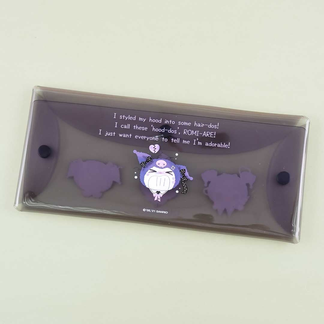 Use this kawaii pouch to keep charms and small trinkets! It features prints of Kuromi wearing different Gothic lolita outfits. It has a button closure to keep your items safe and secure.