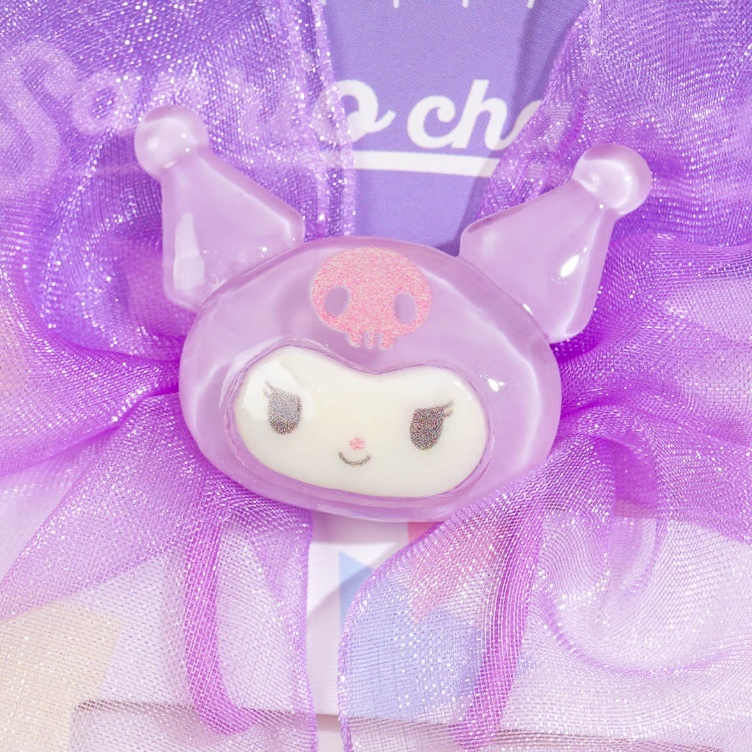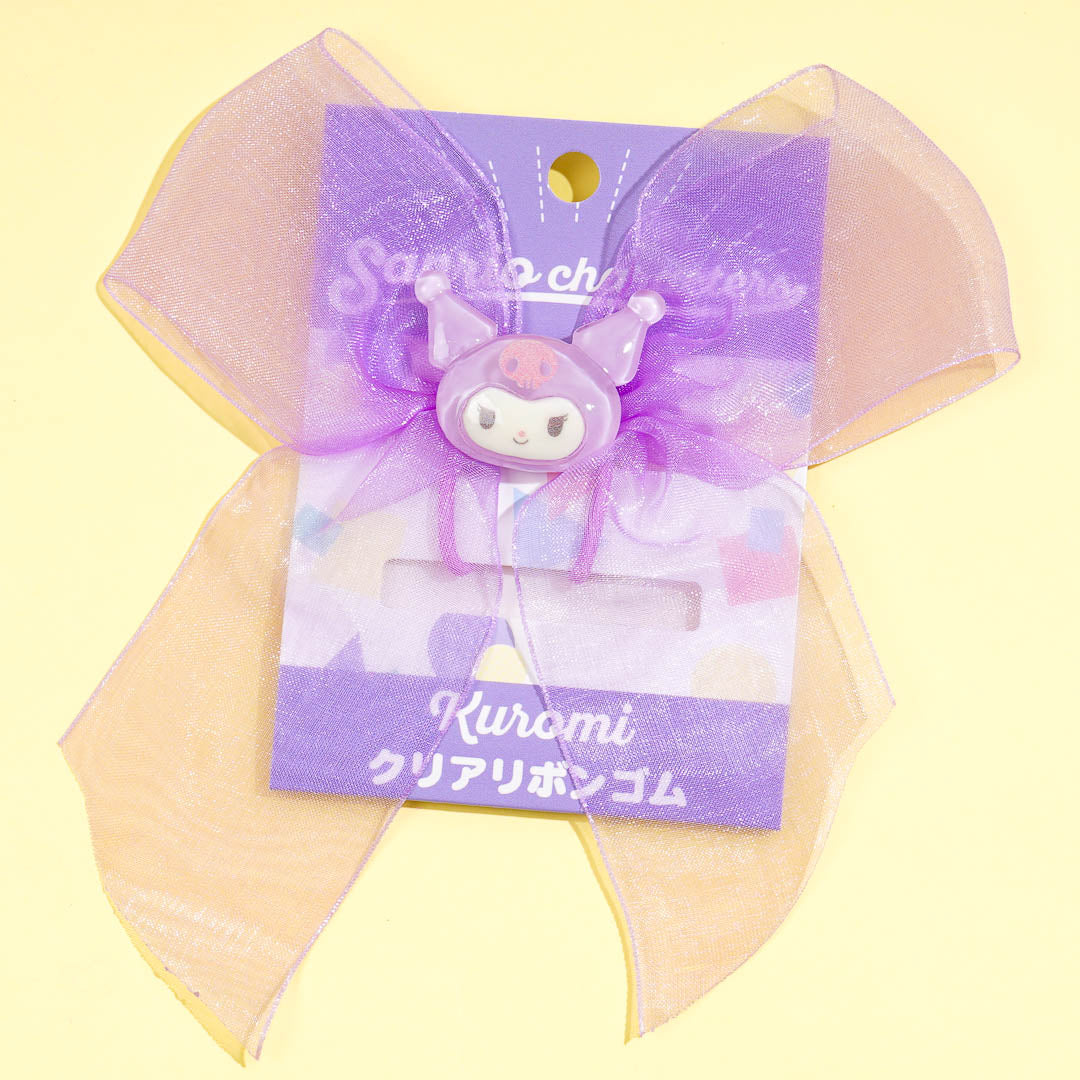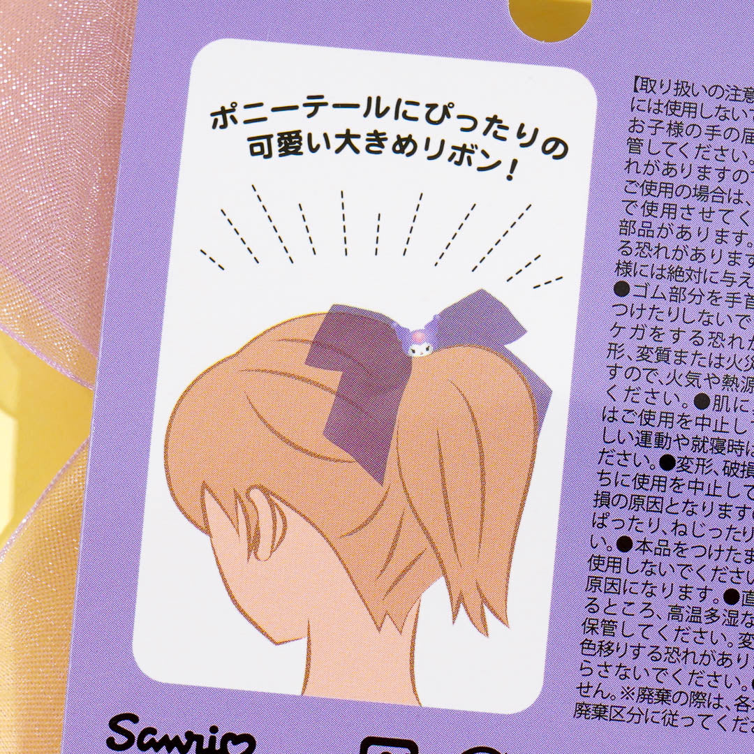 This cute hair tie has a sheer ribbon with a Kuromi decor in the middle! It's the perfect for tying your hair up in a cute ponytail. Add it to your collection of hair ties!