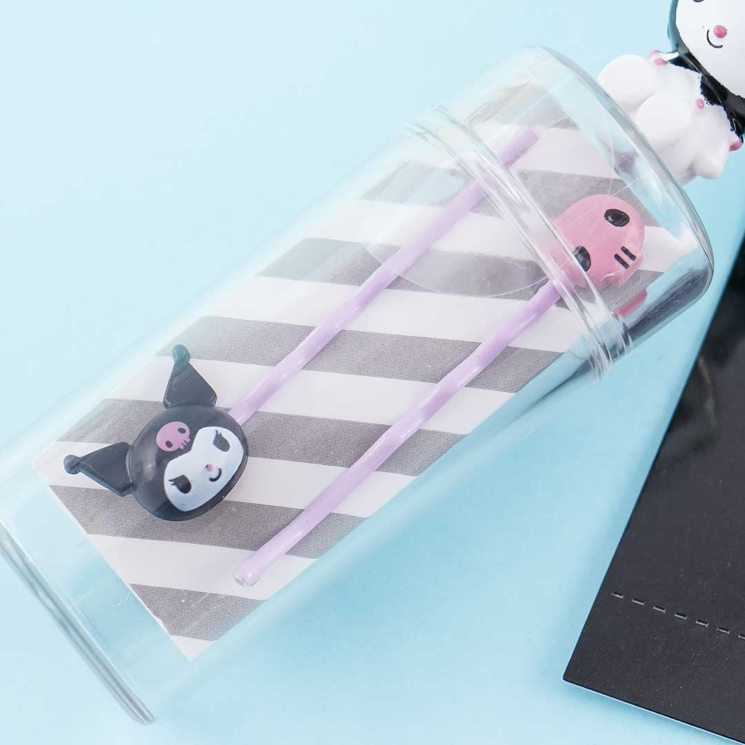 Add a dose of cuteness to your everyday look by using this set of kawaii hairpins! These super cute accessories have charms that either feature Kuromi or a skull. The set also comes with a transparent case with a Kuromi character topper and a plastic clip so you can attach it to your purse.