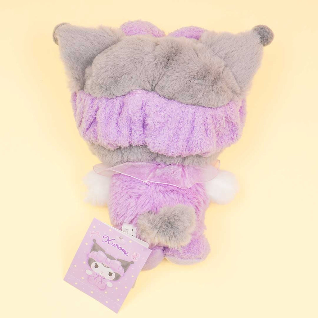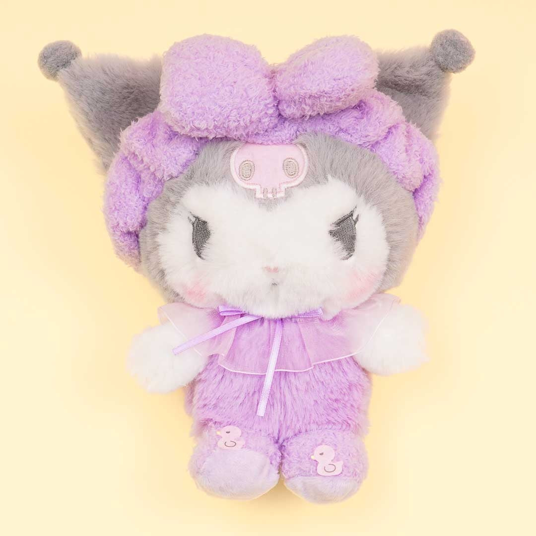 A cute medium-sized Kuromi plushie dressed in lounge wear