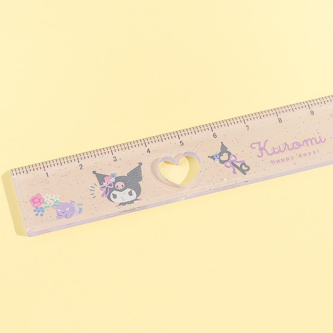 Create different shapes and lines using this super kawaii ruler! It has cute prints of Kuromi and lots of punched-out holes that are heart-shaped. This glittery ruler is a great addition to your craft kit!