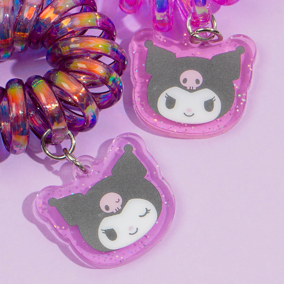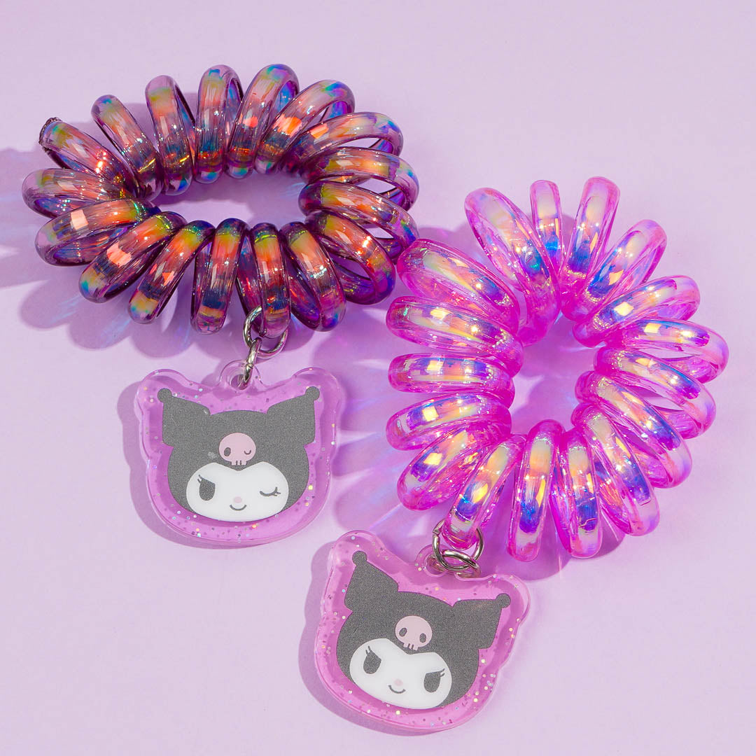 Use these curl coil hair ties to give yourself the cutest hairdo! These holographic coil ties have Kuromi acrylic charms. Add them to your kawaii hair tie collection.