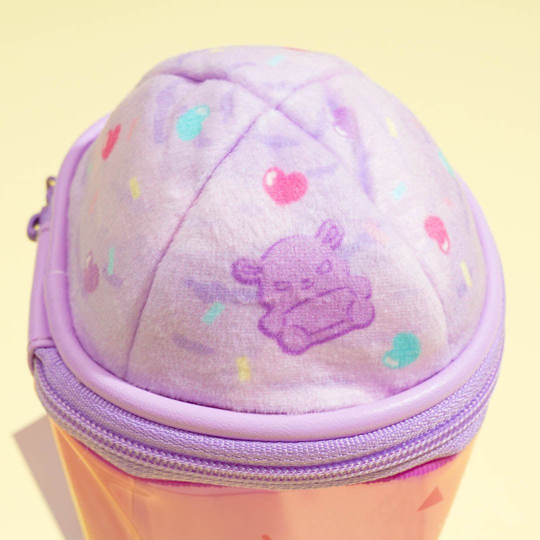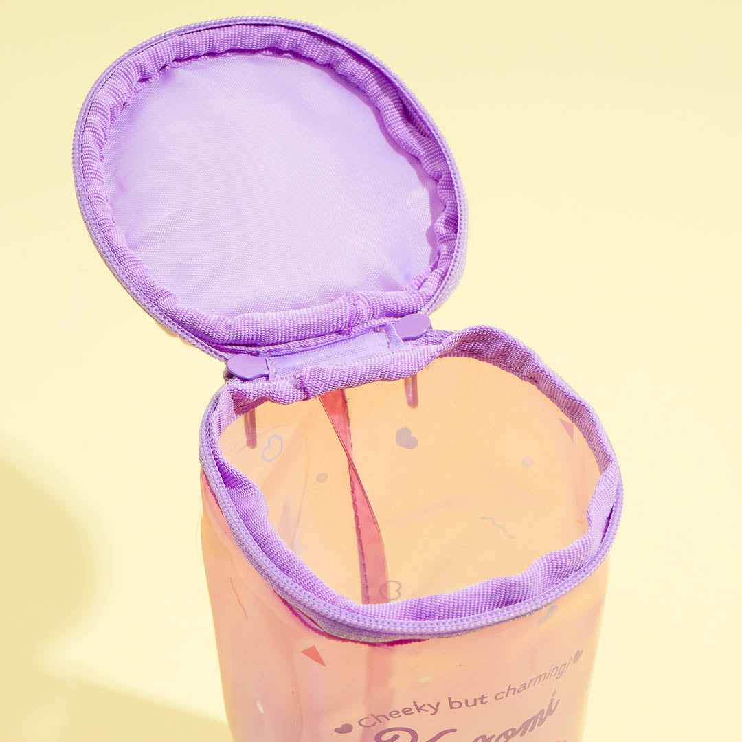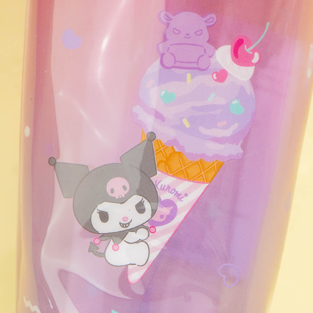 Keep your pens, highlighters, and erasers using this super cute bottle-shaped pencil case. It features a print of Kuromi clinging onto a giant cone of ice cream. You can set the pencil case upright on your desk. This pen case is made from semi-transparent material so you can easily see what's inside.