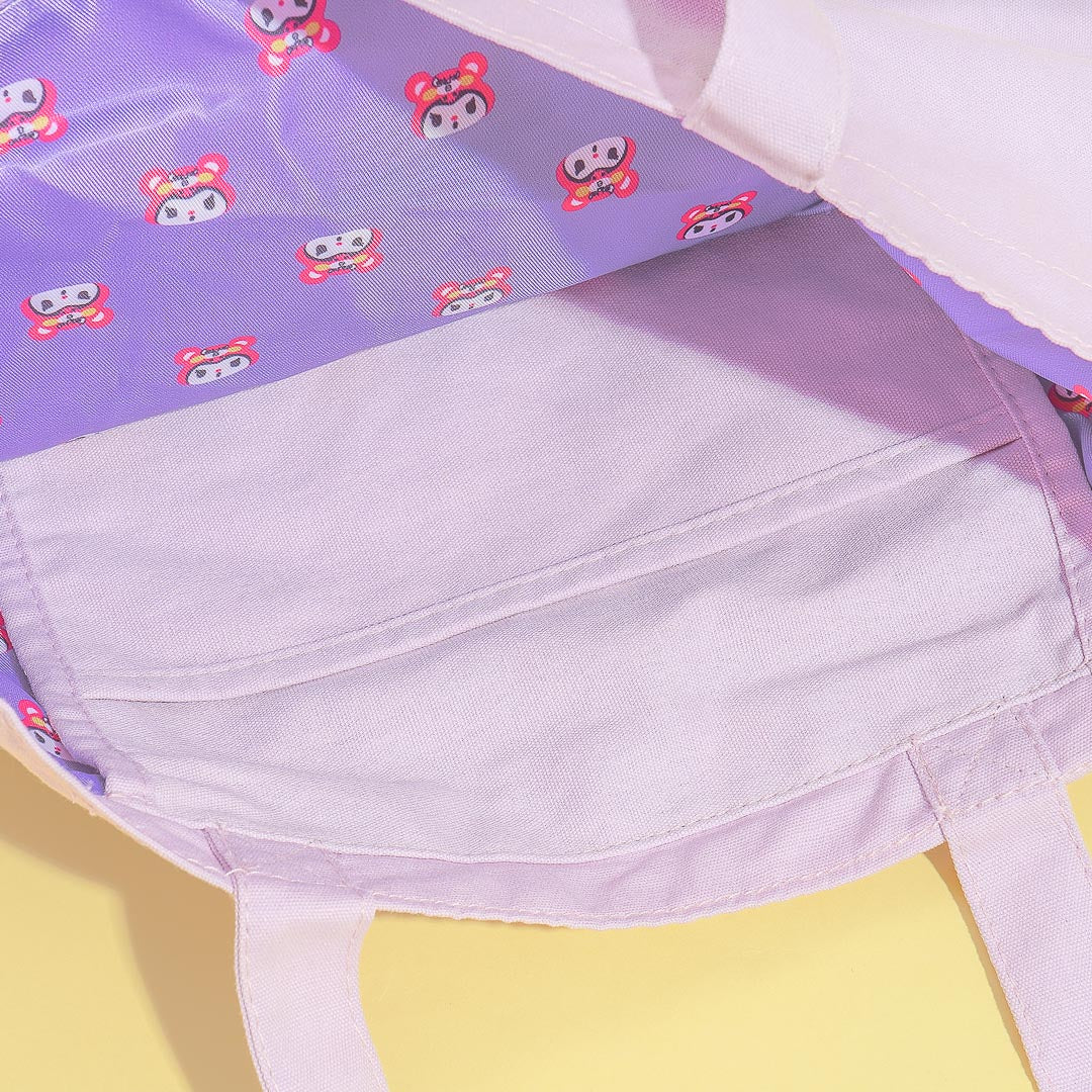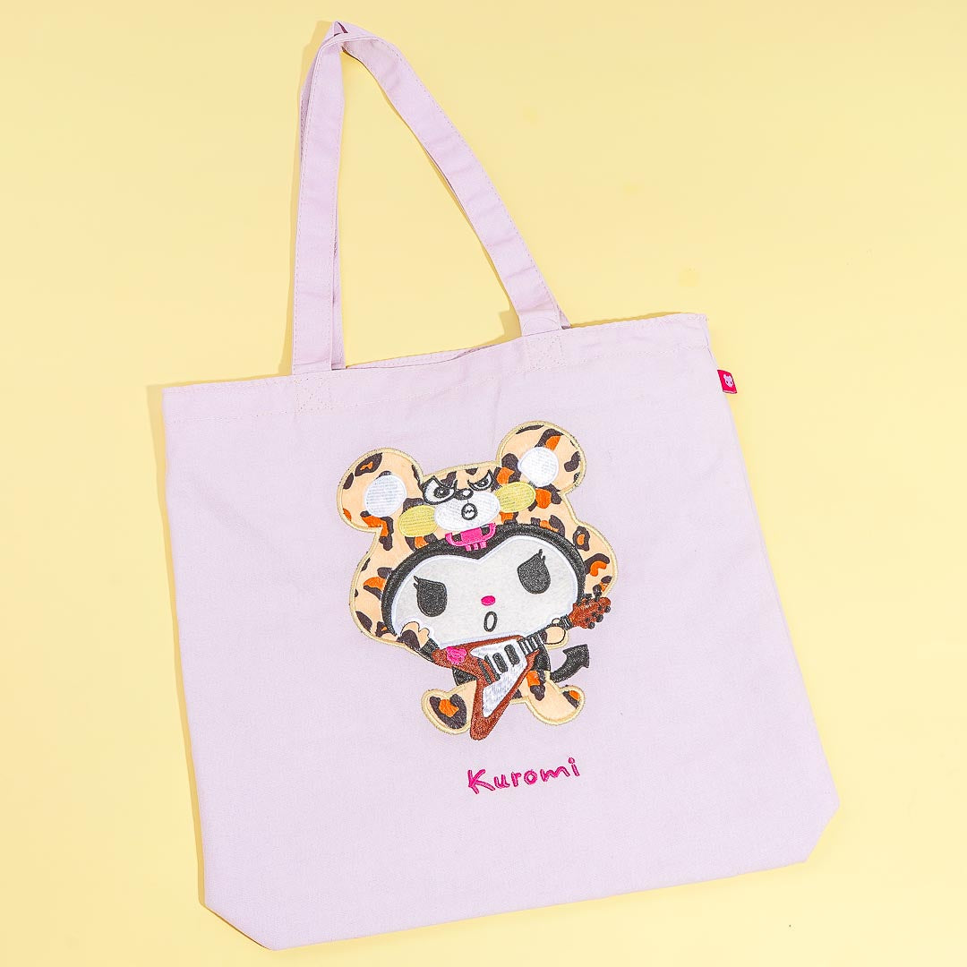 Add a kawaii touch to your outfit when you use this super cute tote bag! It showcases an embroidery of Kuromi in a rockstar leopard costume. This bag has a long handle so you can hang it on your shoulder!