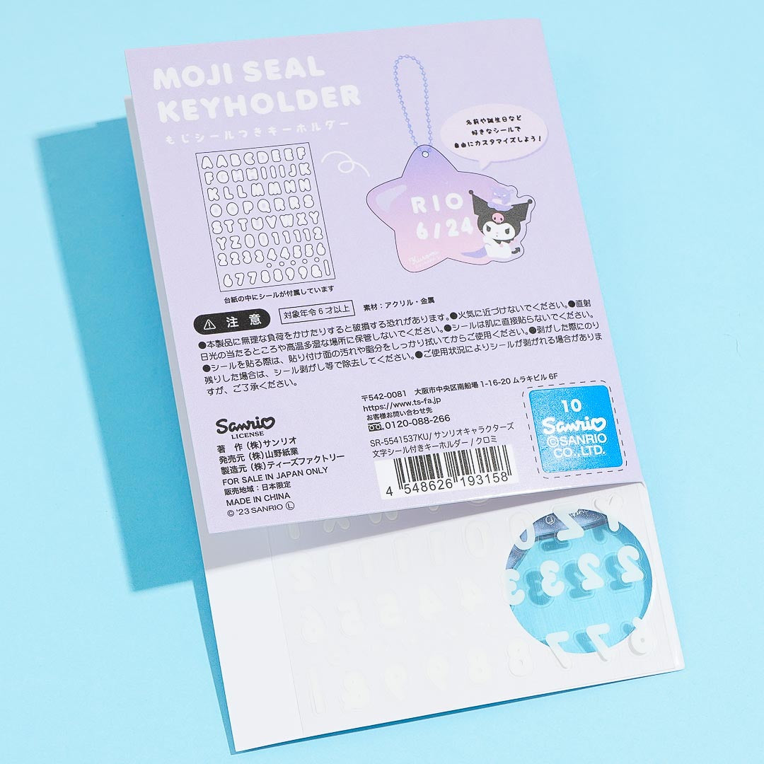 This kawaii star-shaped key holder comes with stickers you can use to customize it. The charm features a cute die-cut illustration of Kuromi on the side with Baku on her head. Spell out your name using the stickers and attach the clear charm to your bag or purse.