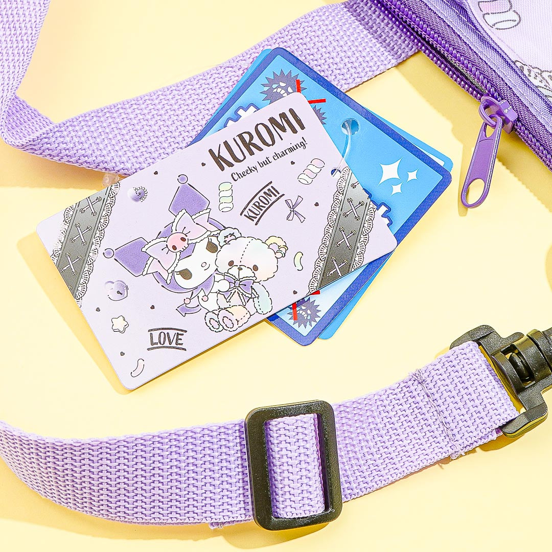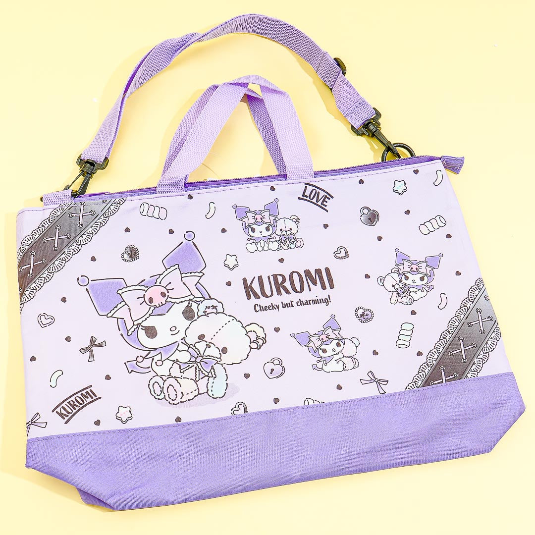 Bring your school or work stuff safely by taking this super cute two-way bag! It features kawaii prints of Kuromi and lots of black Gothic Lolita ribbons and can be used either as a handbag or as a sling bag using the included adjustable bag strap.