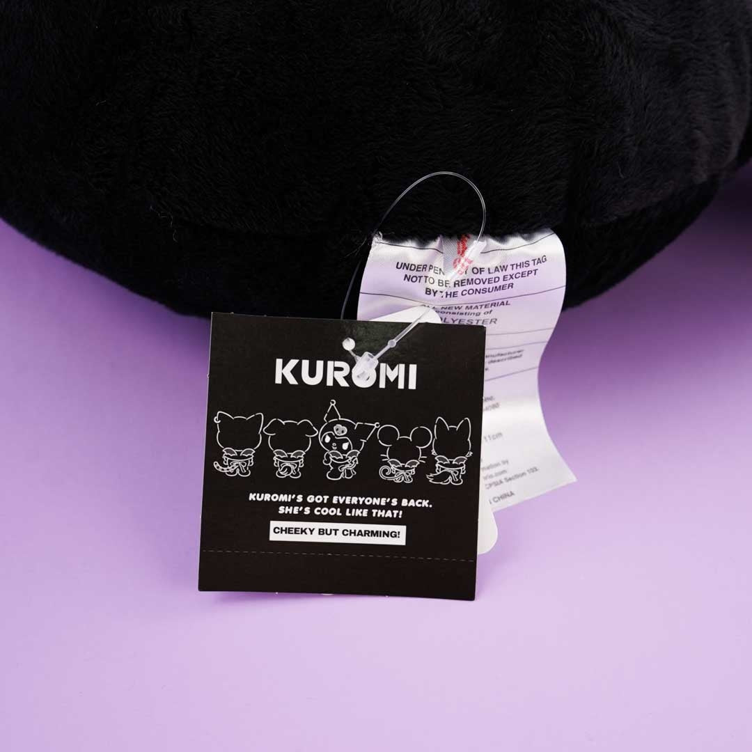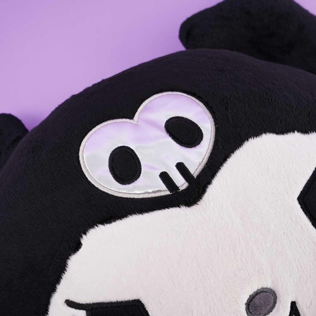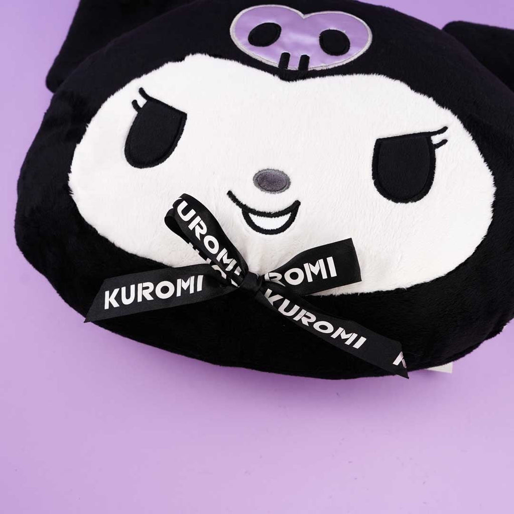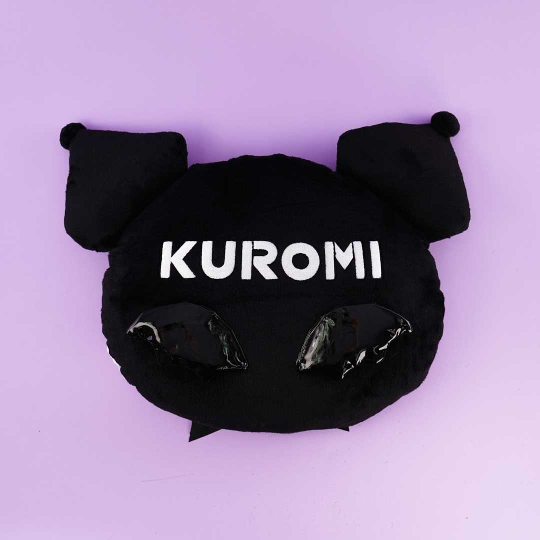 Add a dose of cuteness to your room with this super cute pillow in black monochrome! This Kuromi face cushion is made of soft polyester material with polyurethane. It has fluffy wings at the back and a Kuromi logo design.