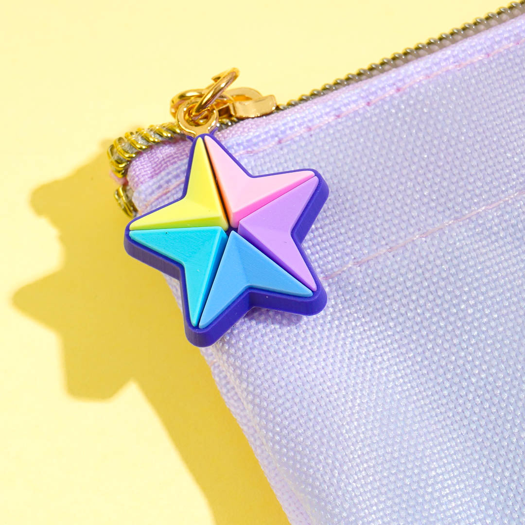 Travel kawaii-style using this super cute tote bag! It features a musical galaxy design with a gradient color, stars, notes, and Kuromi. The bag also has three small pockets for organizing your things, plus a star-shaped zipper and Kuromi charm for added cuteness!