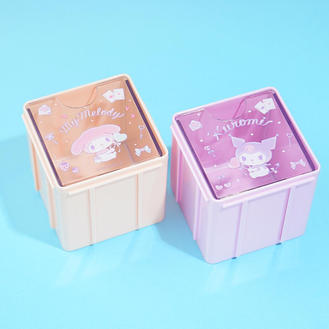 These kawaii cube-shaped drawers can be connected vertically or horizontally. They feature cute illustrations of Kuromi and My Melody with prints of hearts and keys. Each drawer is completely removable so it's easy to organize your small items.