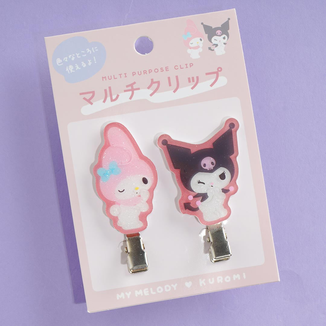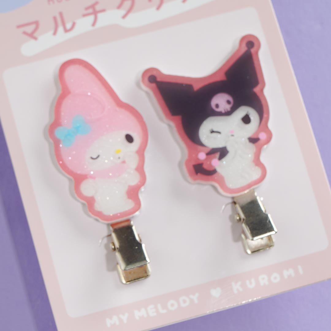 Kuromi & My Melody Glittery Multi Purpose Metal Clip Set