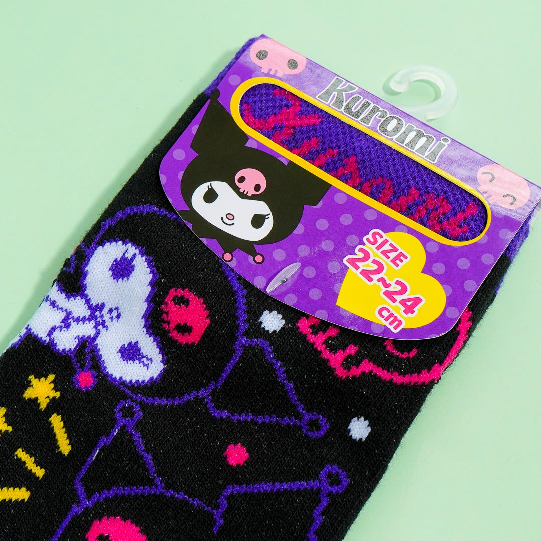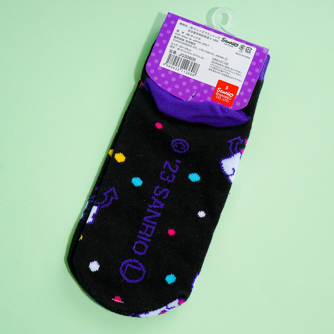 Keep yourself cute and comfy all day by wearing this pair of black jacquard socks! It has kawaii colorful prints of stars, dots, and Kuromi doing her signature naughty grins!