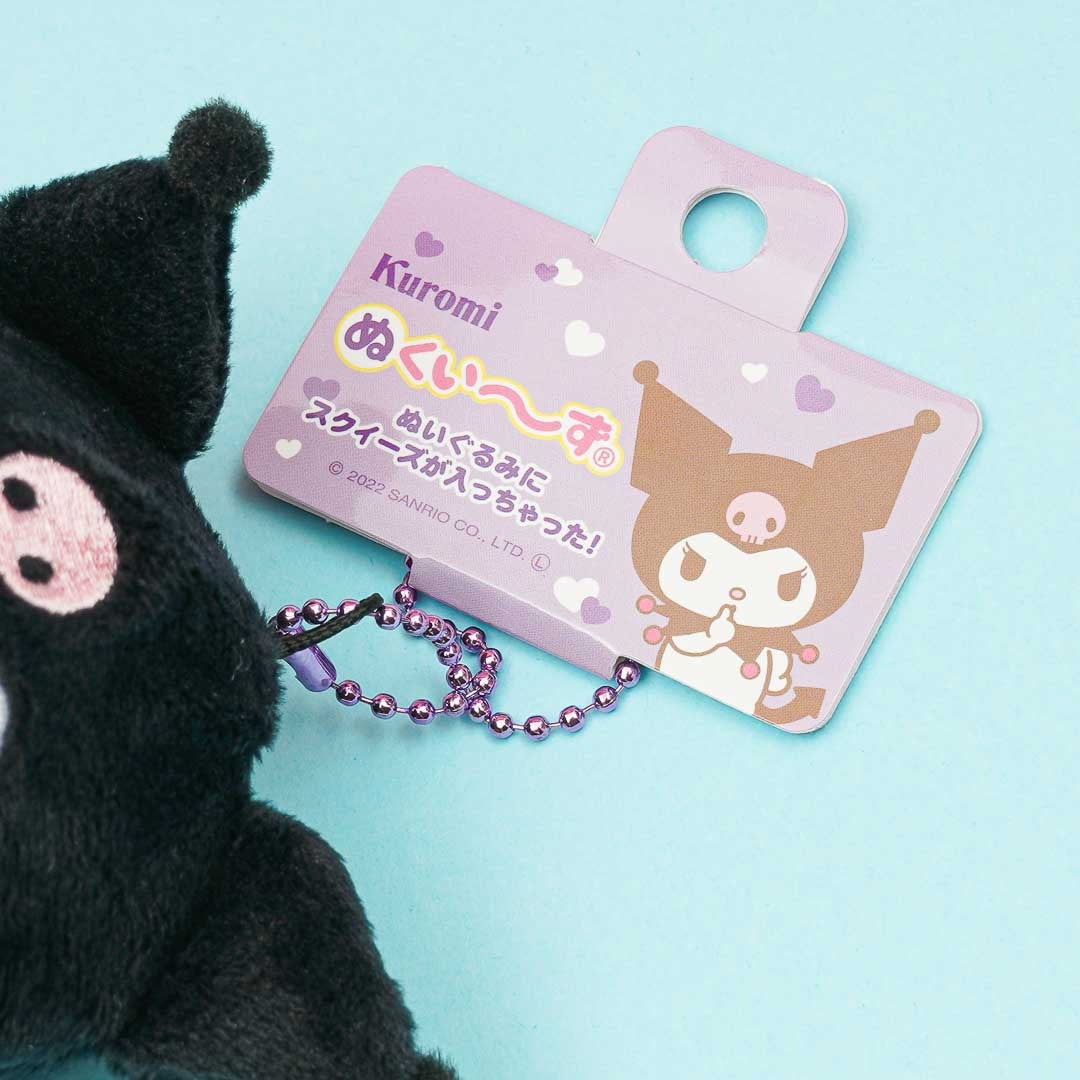 Show off your love for kawaii culture with this super cute Kuromi plushie. It comes from the Sanrio Nukuizu series. You can attach this medium-sized charm to your favorite bag with its removable ball chain.