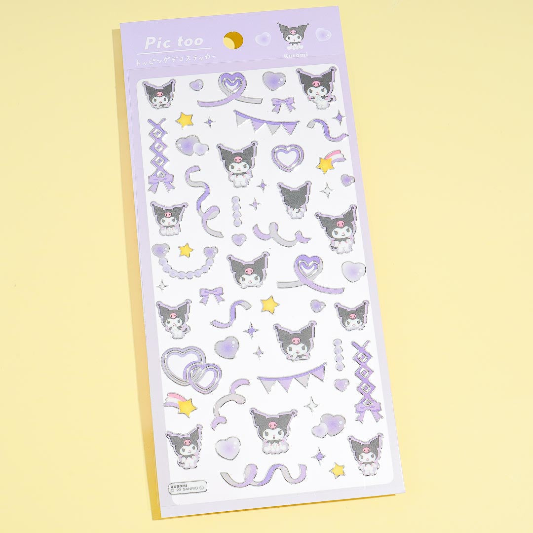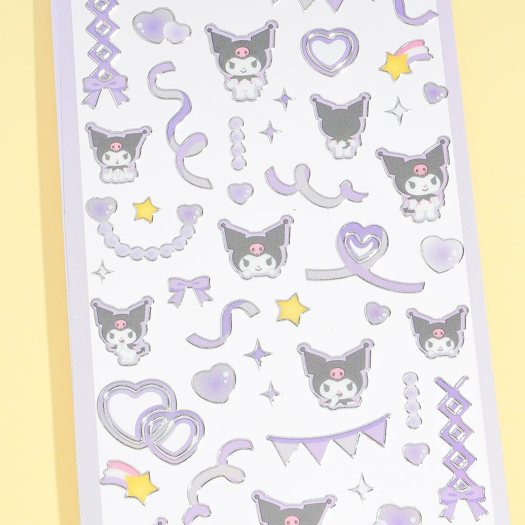 These stickers showcase cute prints of Kuromi and party ribbons! Use them to decorate your planner. These stickers have foil-stamped edges so they look extra cuter.