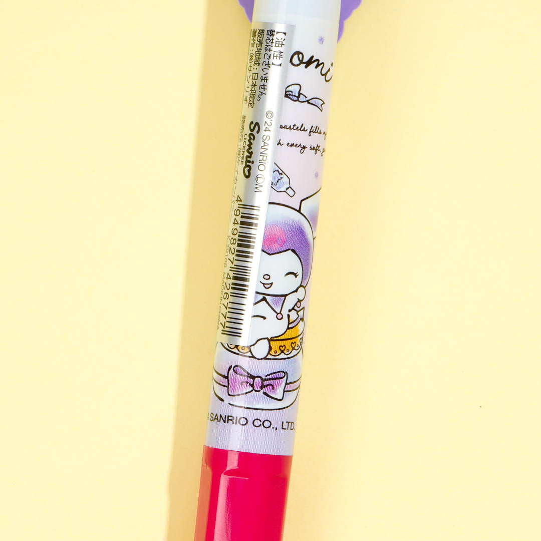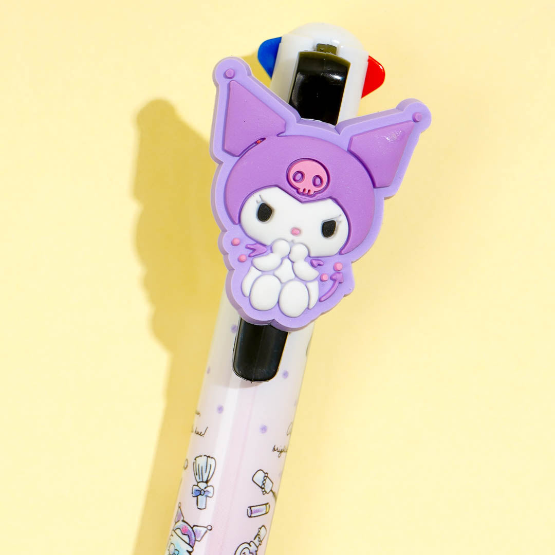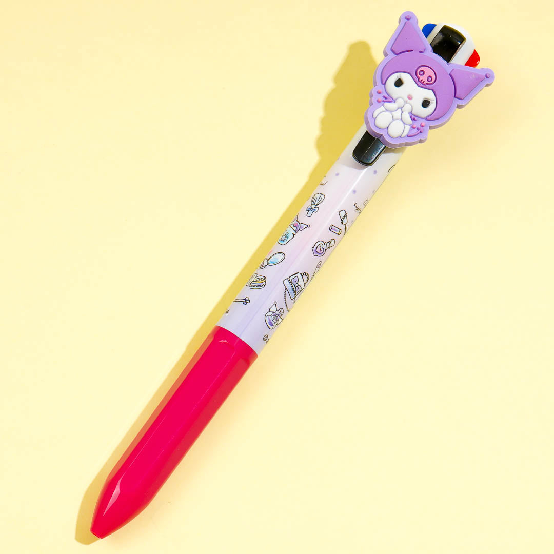 Use this super kawaii multi-color pen to write notes at work or at school. It has illustrations of Kuromi with beauty items like makeup, lipstick, and brushes! This pen also has a Kuromi decor on its clip.