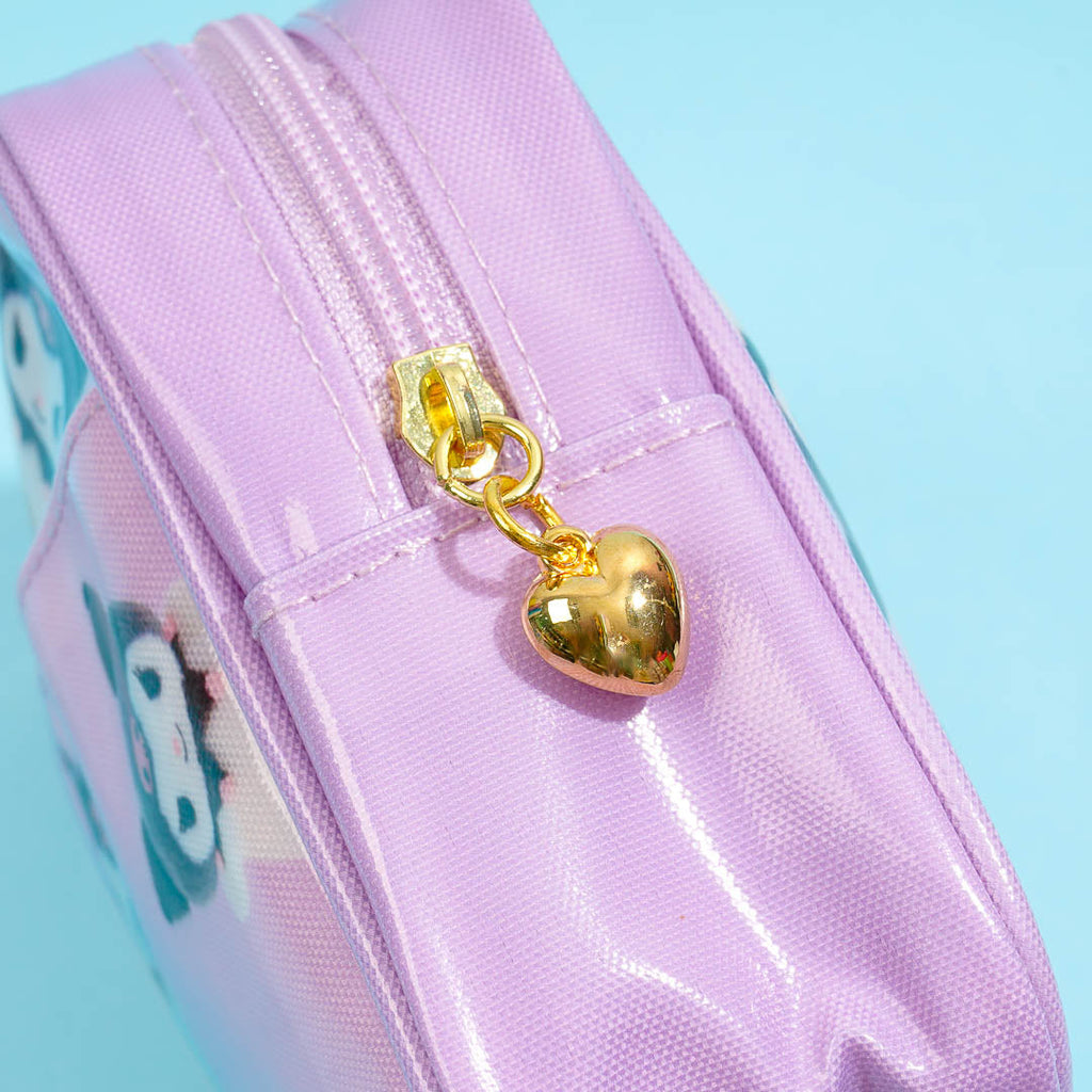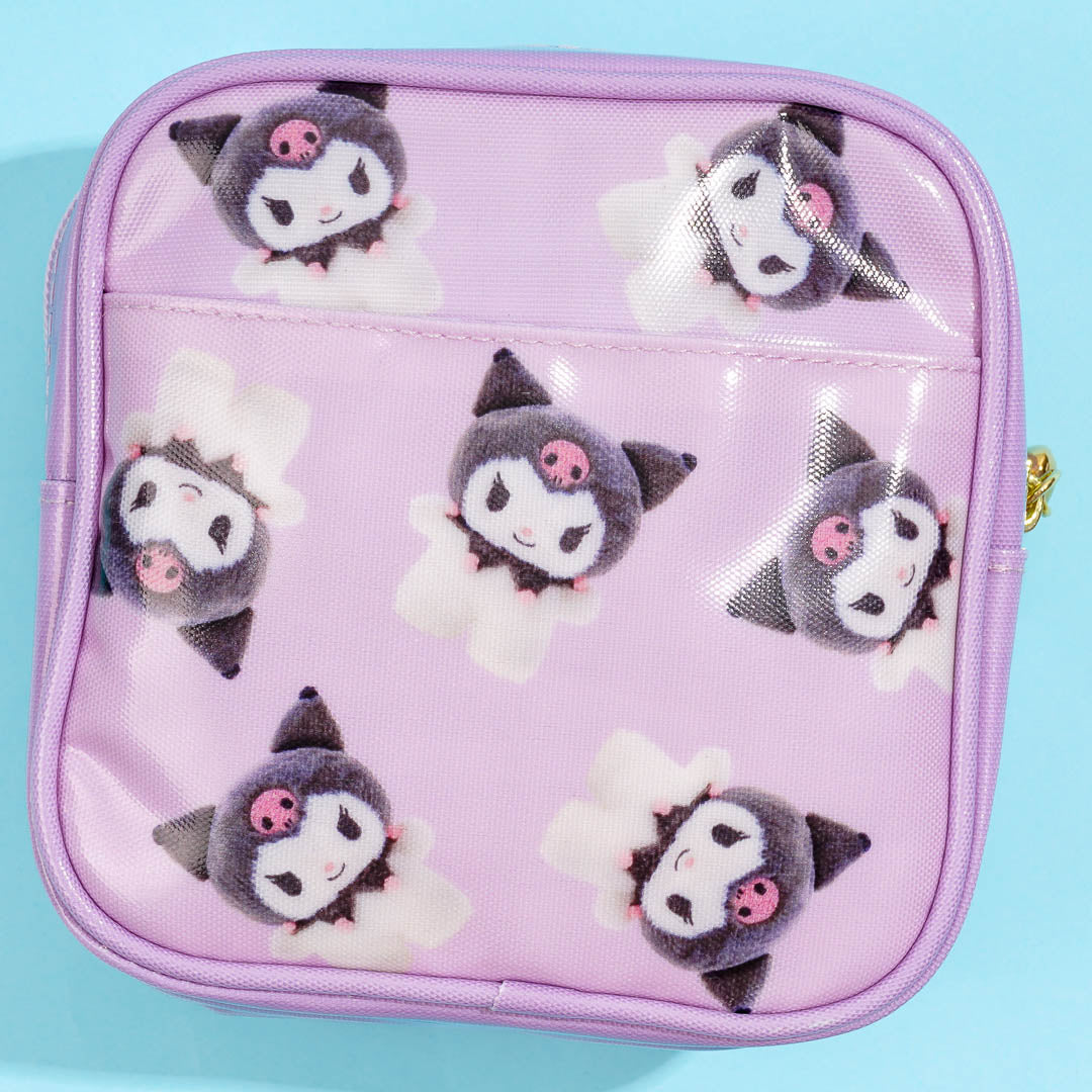 This kawaii pouch from the Sanrio Pitatto Friends series is covered in prints of a Kuromi plushie. Use it to organize your lip balm, blush-on, and other small makeup items! It has multiple inner pockets and an outer pocket for you to use. You can keep this pouch clean since it has a water and dirt-resistant laminated finish.