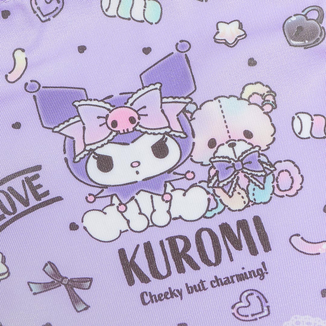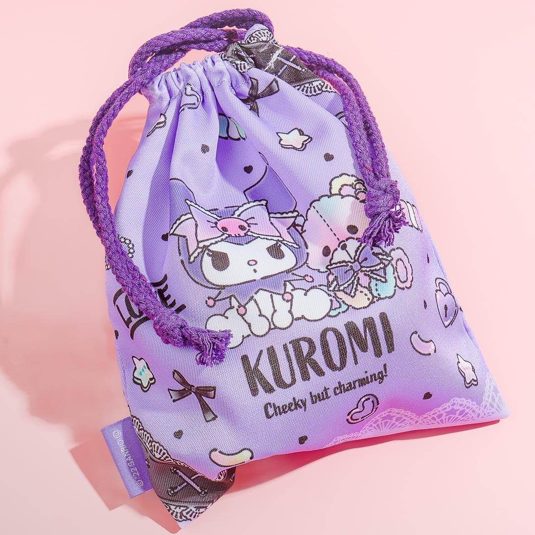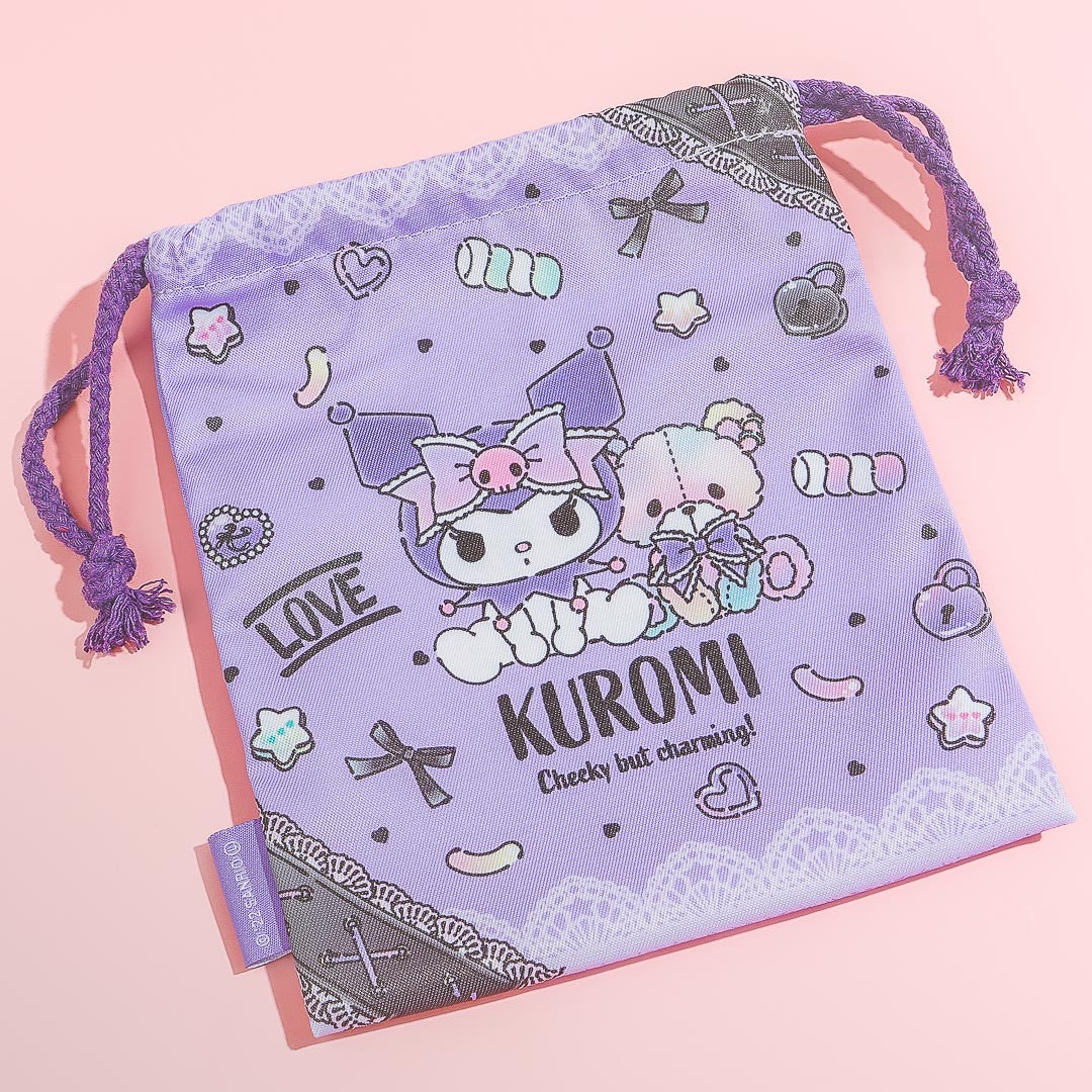 Store your Trick-or-Treat candies inside this super cute bag featuring a kawaii illustration of Kuromi playing with a plushie! It features an easy-to-use drawstring closure so you can keep your goodies secure.